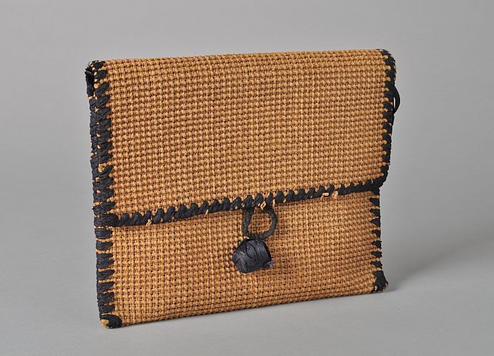 Schoudertas van bruin geweven papiertouw, met zwart ...