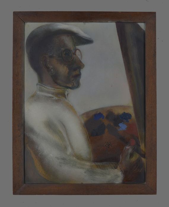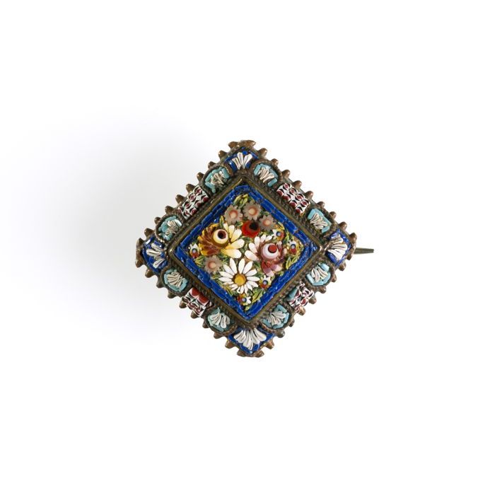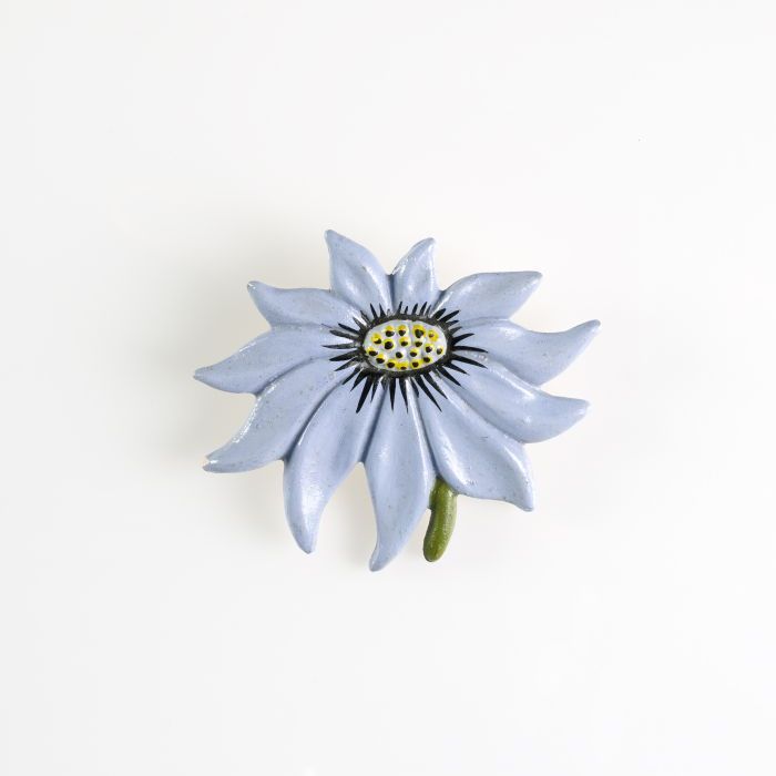 Broche, in de vorm van een lichtblauw beschilderde b...