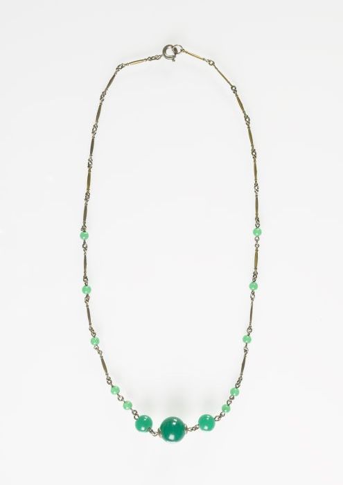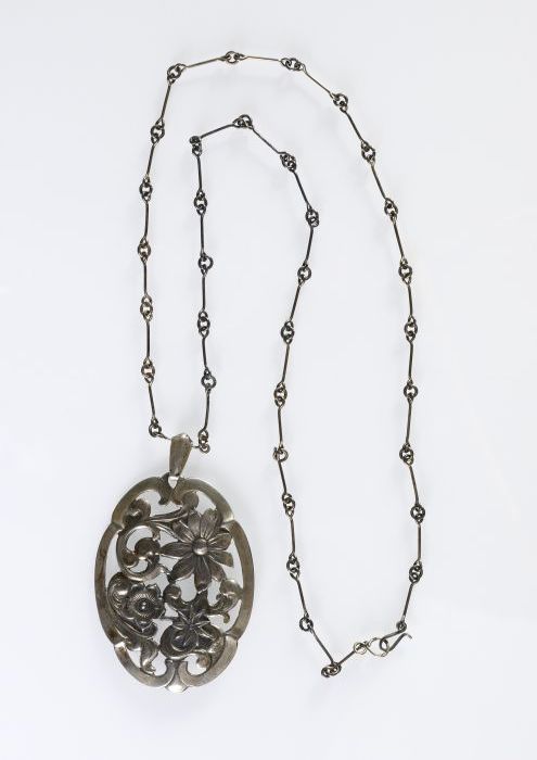 Zilverkleurige halsketting met ovale opengewerkt han...