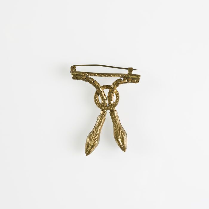 Goudkleurige broche met twee beweegbare slangenkoppe...