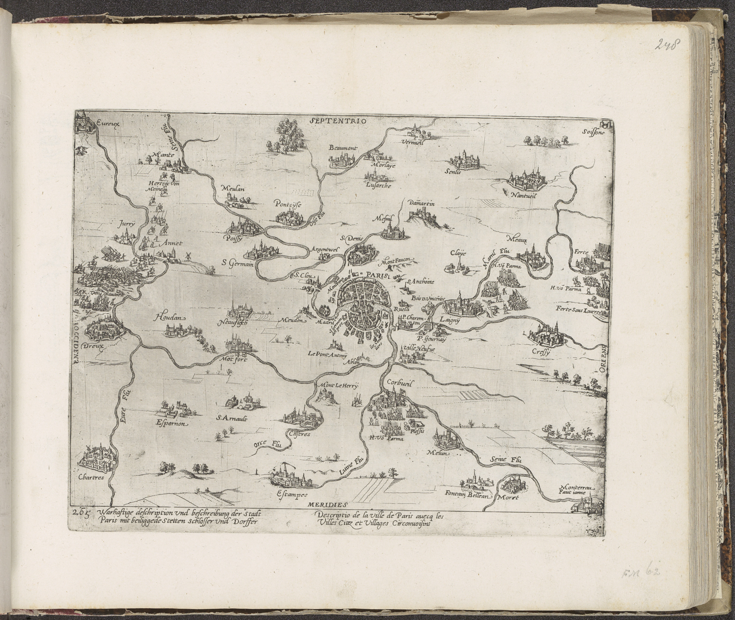 Kaart van Parijs en omgeving, 1590