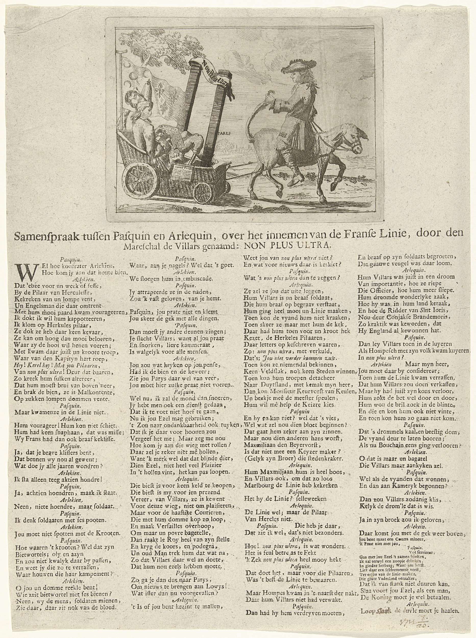 Spotprent op het innemen van de Franse Linie, 1711
