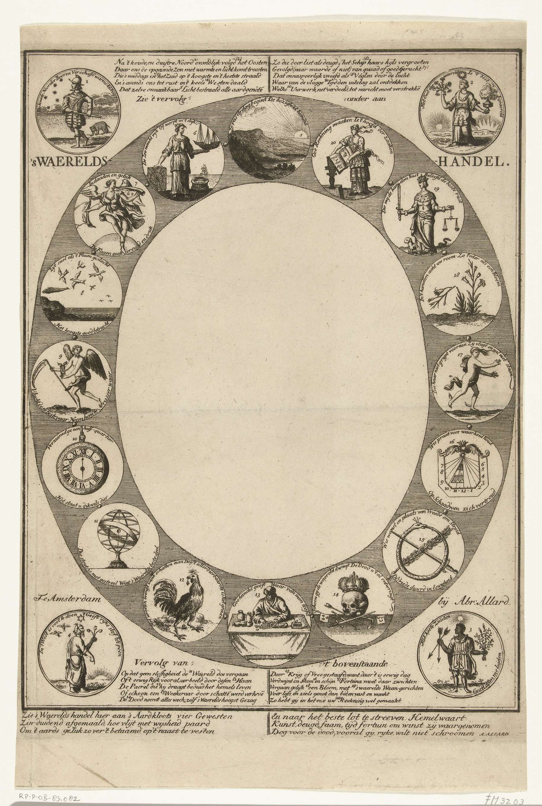 Blad met vier allegorieën over de zorg van de mens v...