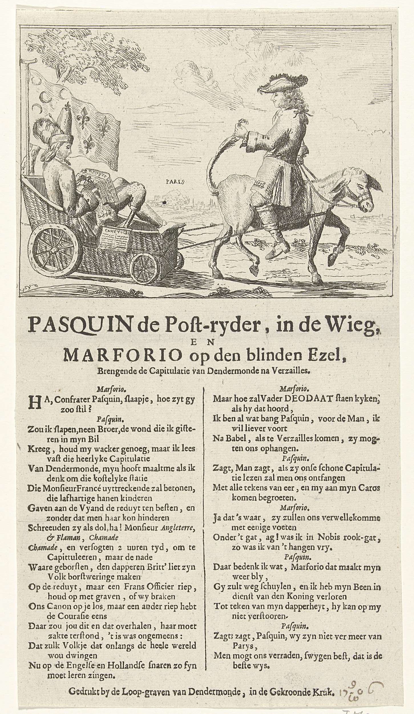Spotprent op het Franse verlies van Dendermonde, 1706