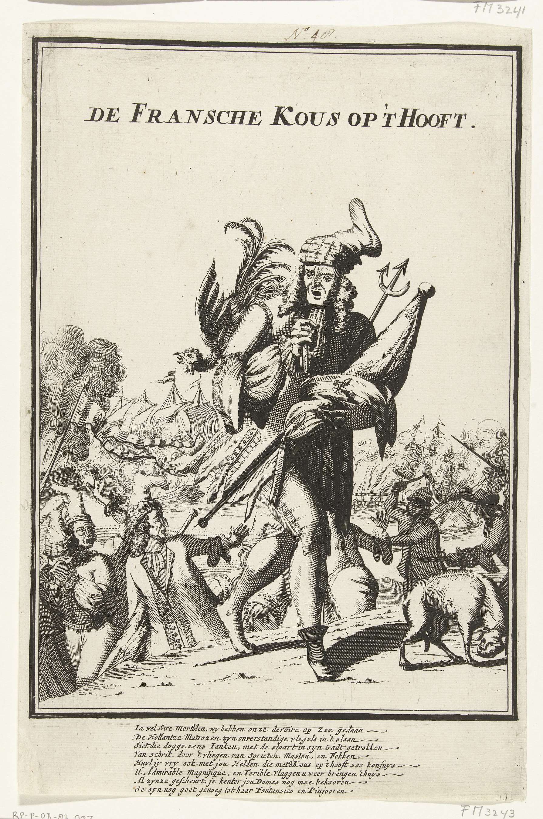 Spotprent op een Franse nederlaag in een zeeslag, 1705