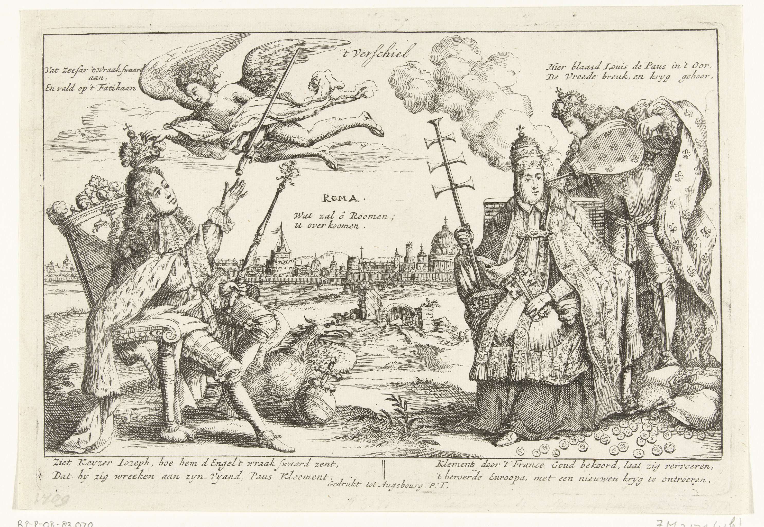 Keizer Jozef I tegenover paus Clemens XI en koning L...