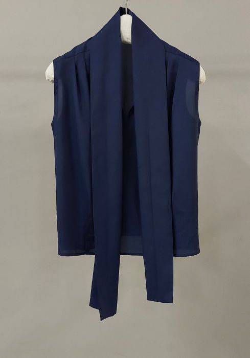 Mouwloze blouse van donkerblauw kunstzijde (?) met s...