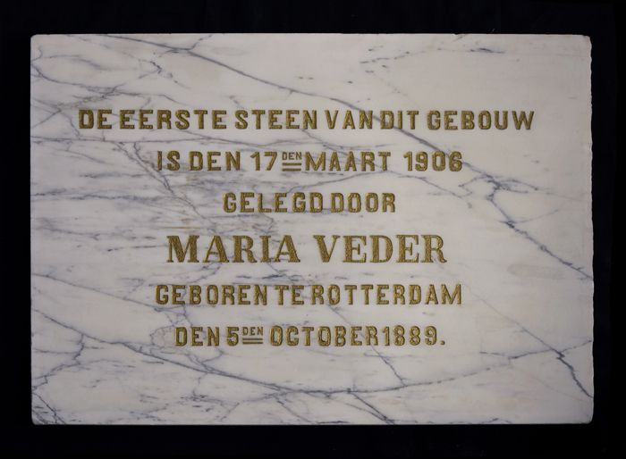 Marmeren plaquette met inscriptie eerste steenleggin...