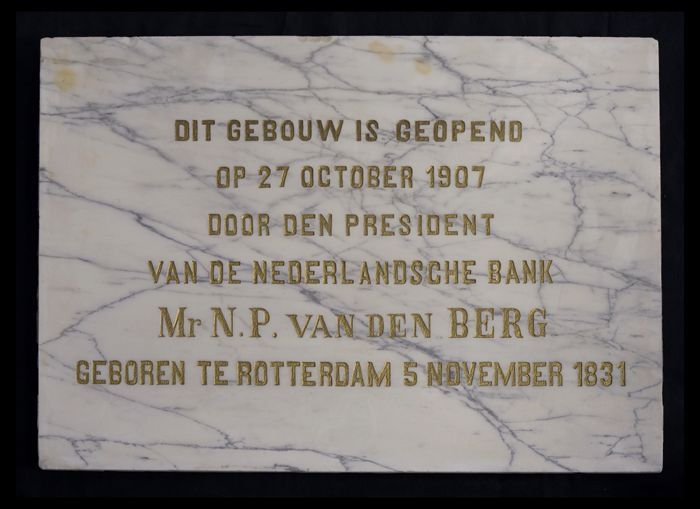 Marmeren plaquette met inscriptie opening van de Bij...