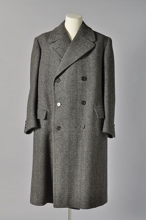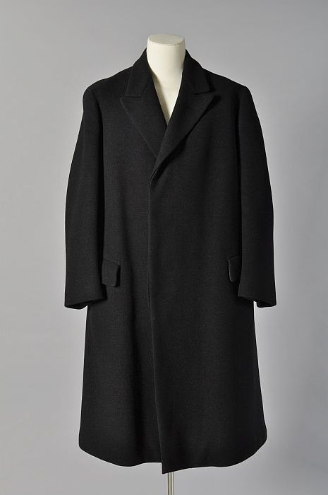 Herenwinterjas, lang model van effen zwarte wol, "Do...