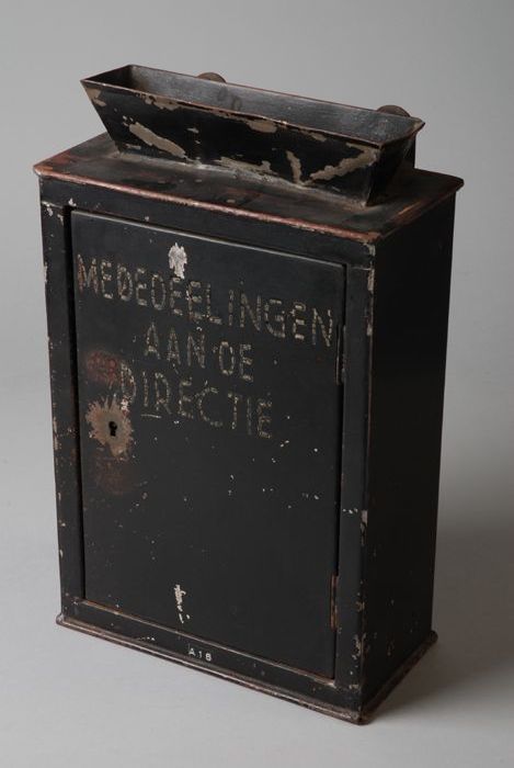 Zwart blikken kastje voor aan muur met aan bovenzijd...