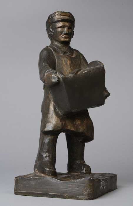 Kunststof beeldje van vuilnisman met vuilnisbak