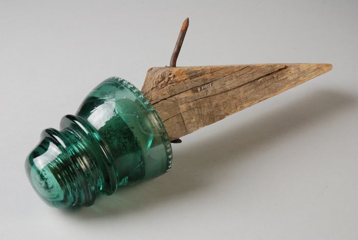 Glazen isolator aan houten bevestiging met tap