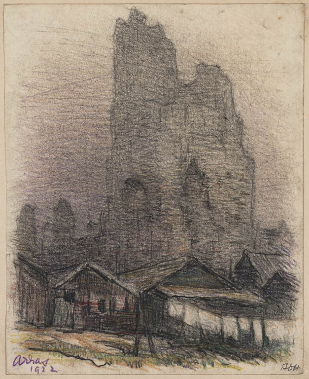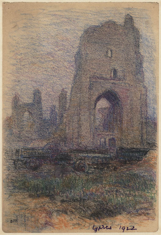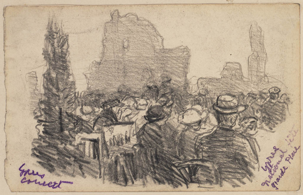Openluchtconcert te Ieperen, ruïnes op de achtergrond