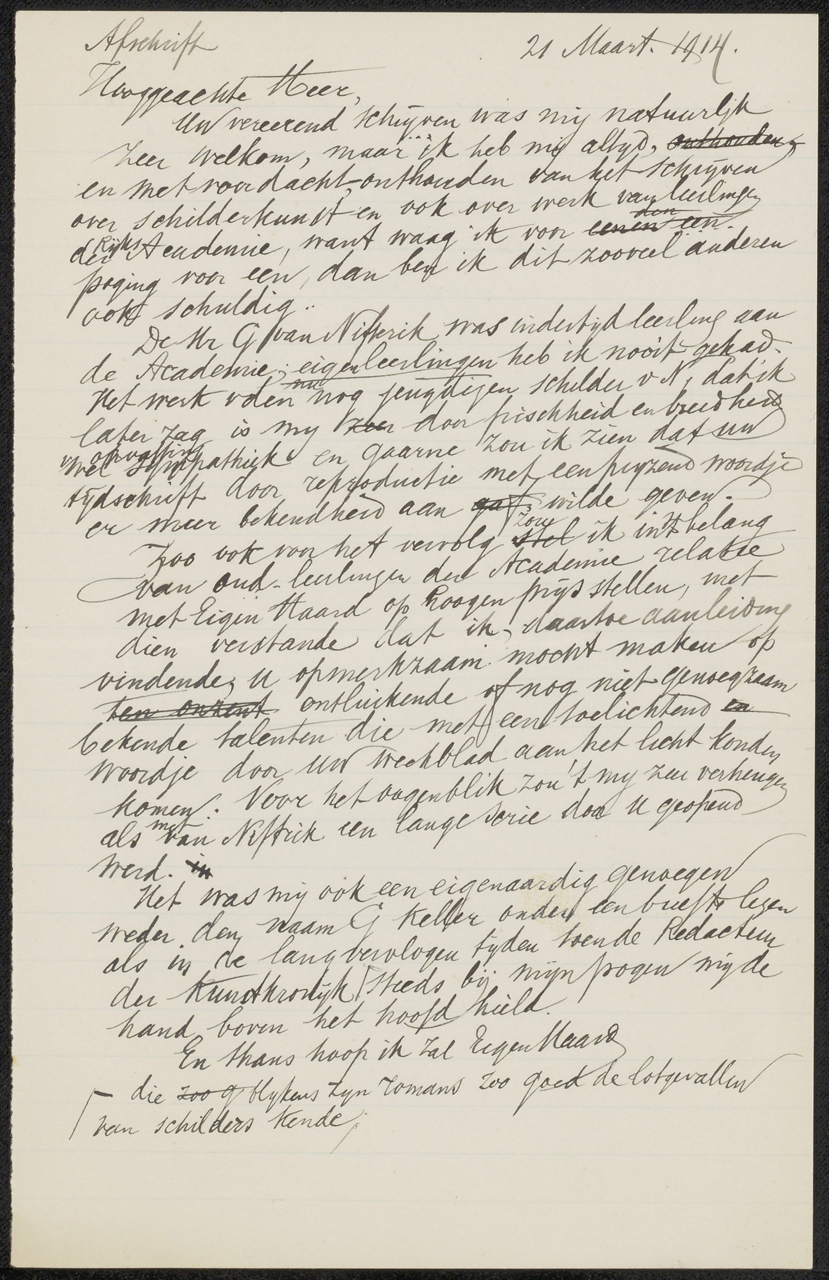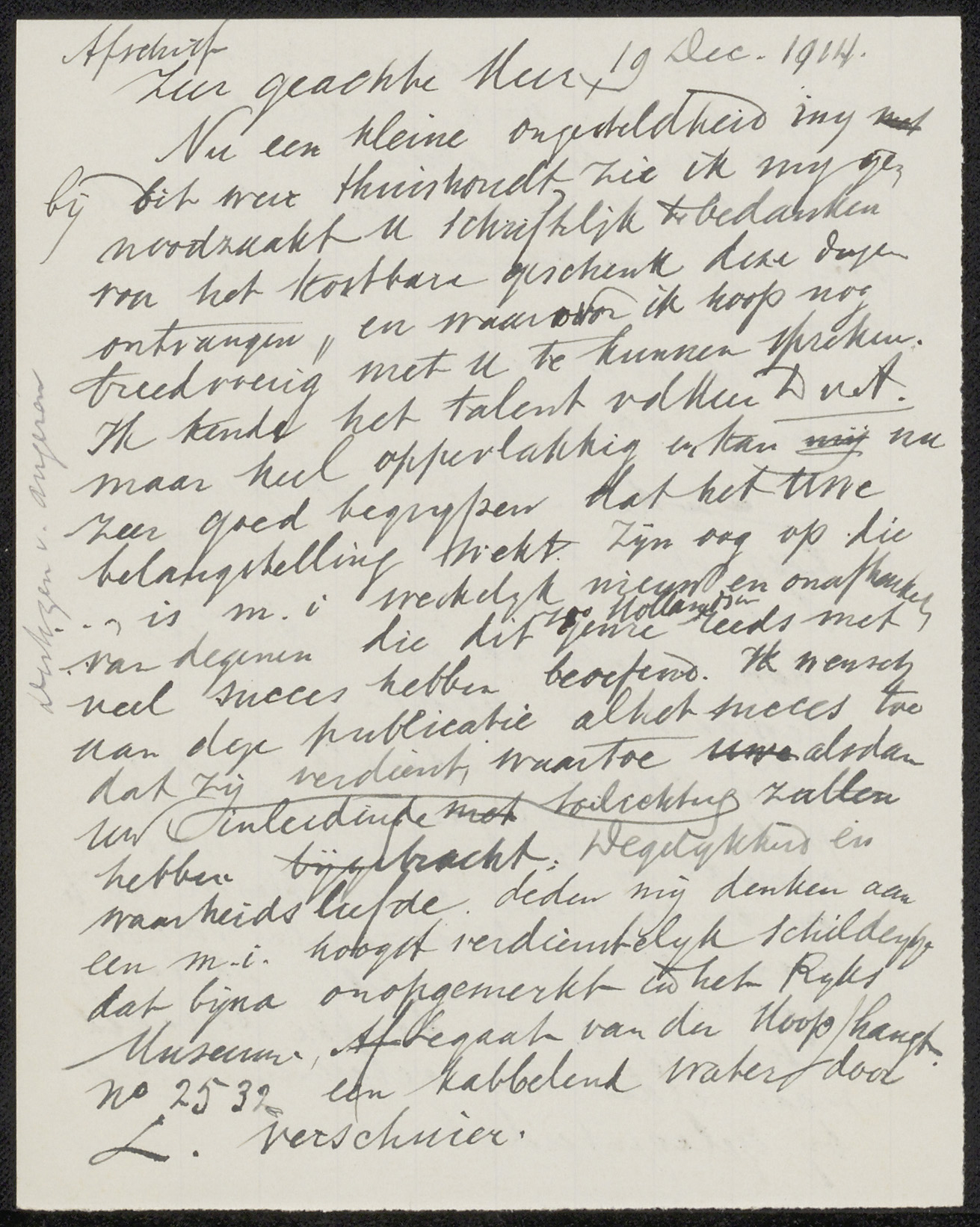 Conceptbrief aan Jan Veth en conceptbrief aan anoniem