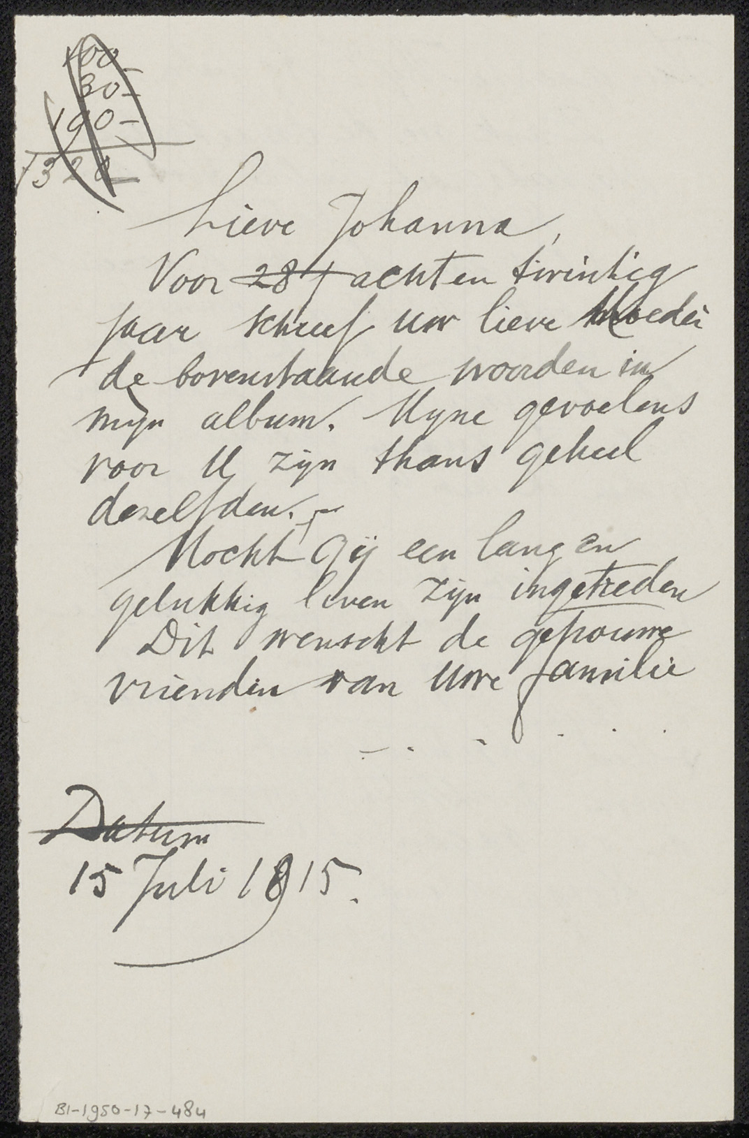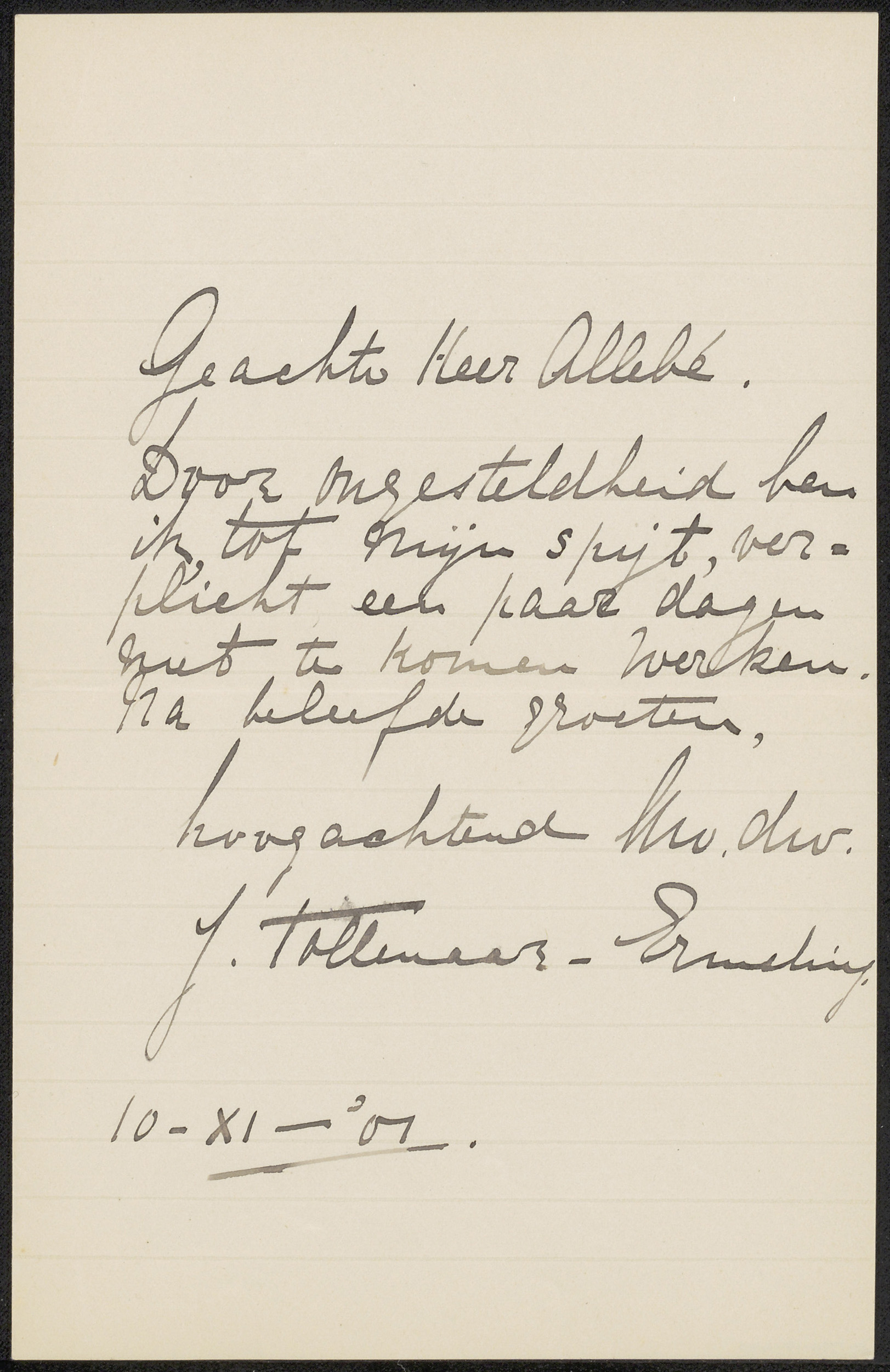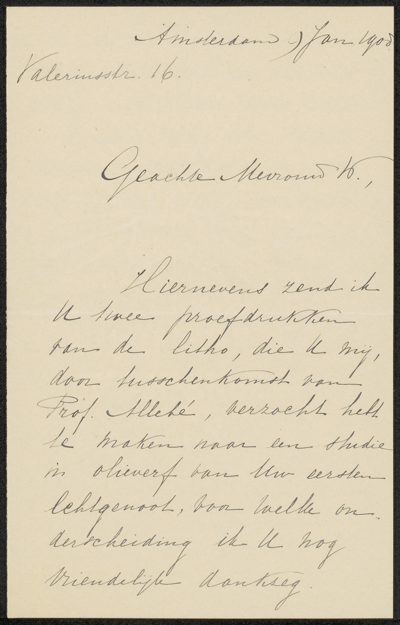 Brief aan Willem Bastiaan Tholen en Jacoba Suzanna T...