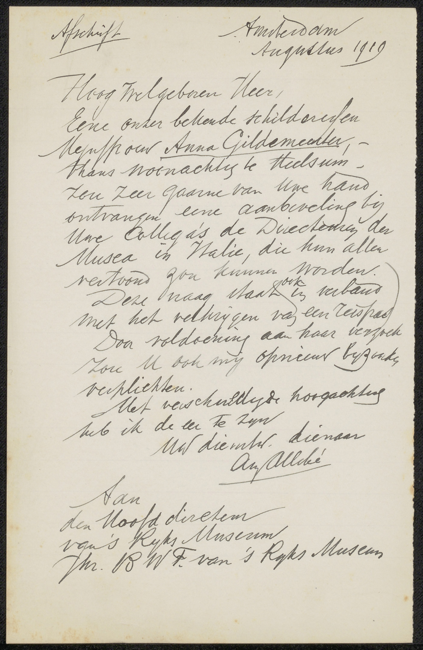 Conceptbrief aan Agnieta Gijswijt en conceptbrief aa...