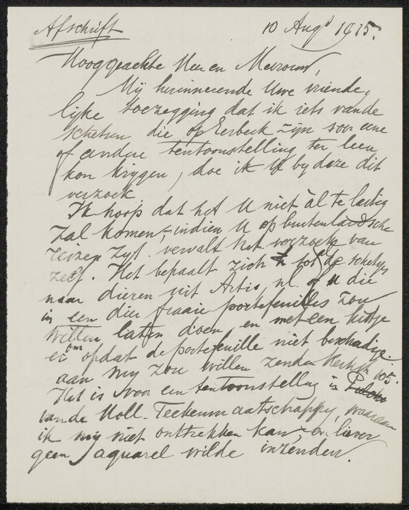 Conceptbrief aan anoniem, conceptbrief aan Henri Goo...