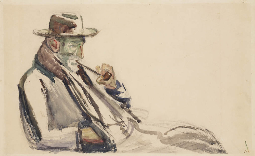 Pijprokende man met verso een Vrouweportret (vage sc...