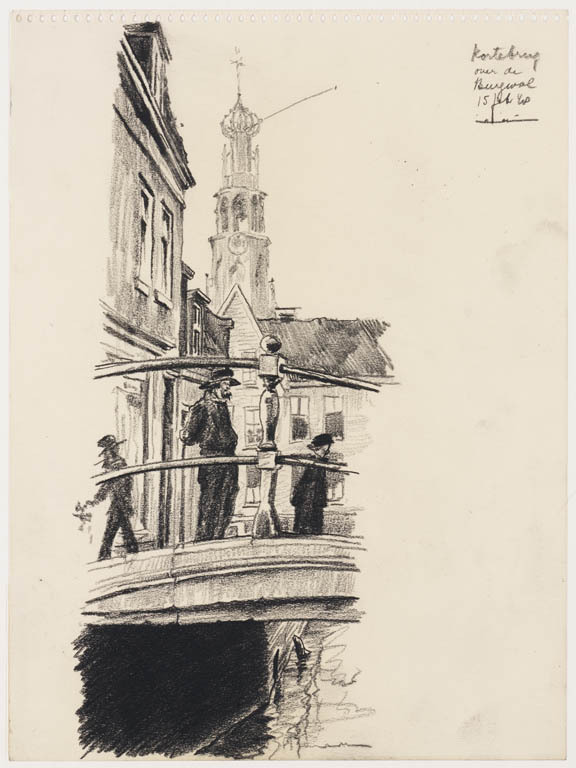 Gezicht op de Korte Brug over de Burgwal te Haarlem ...