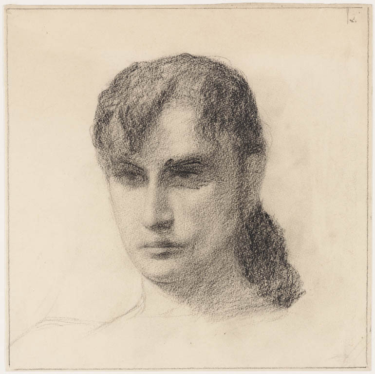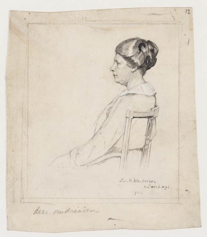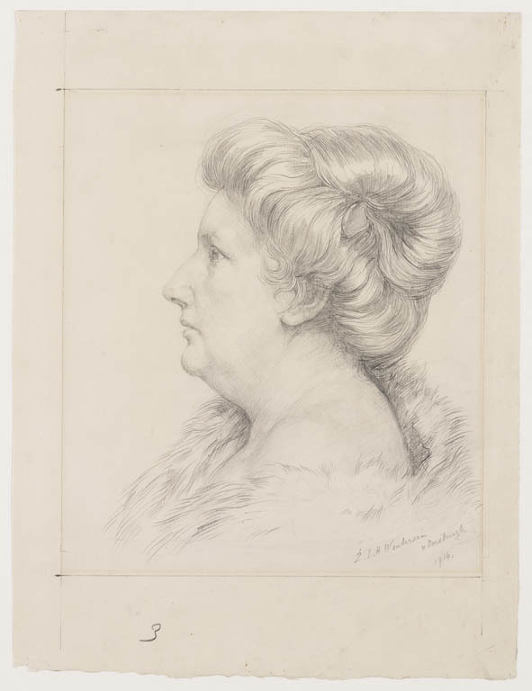 Halffiguur van een vrouw en profil naar rechts
