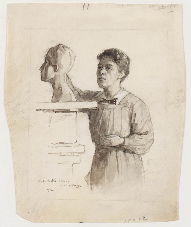 Portret van de beeldhouwster Therese van Hall 3/4 st...