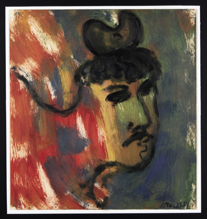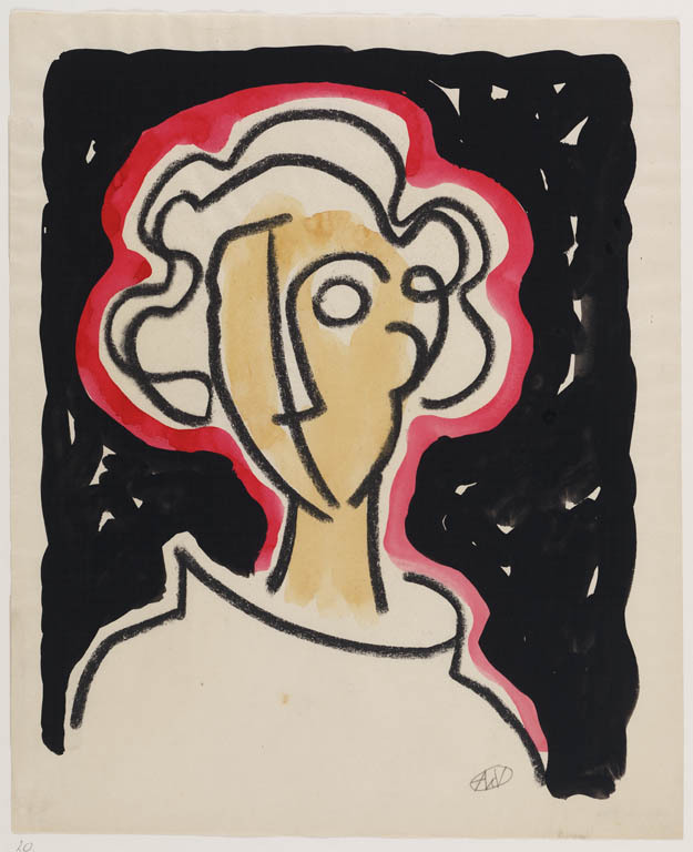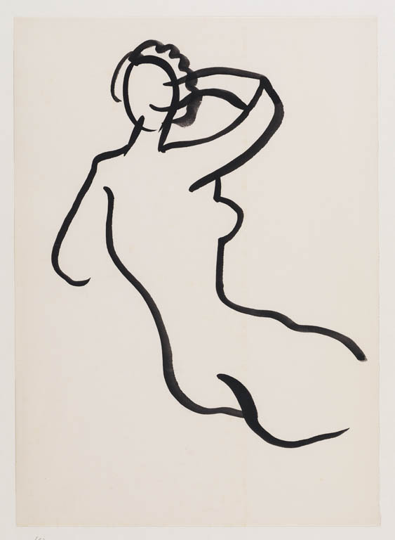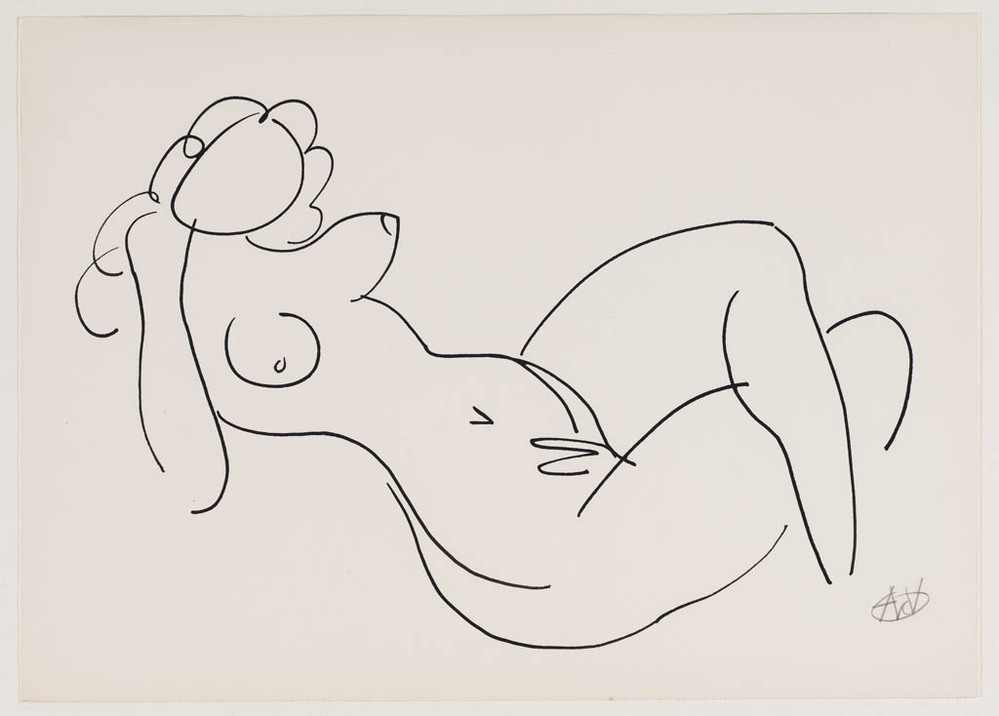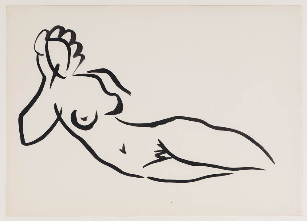 Liggend vrouwelijk naakt, het hoofd gesteund in de r...