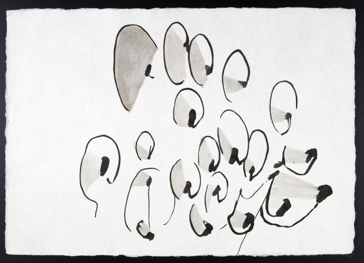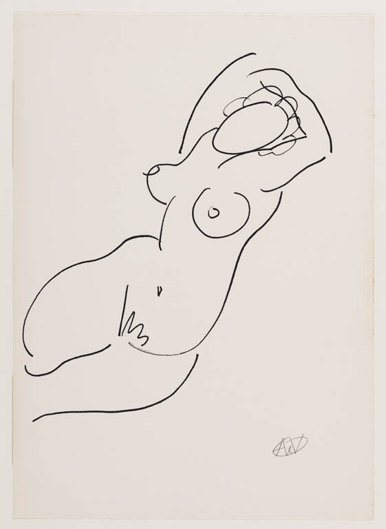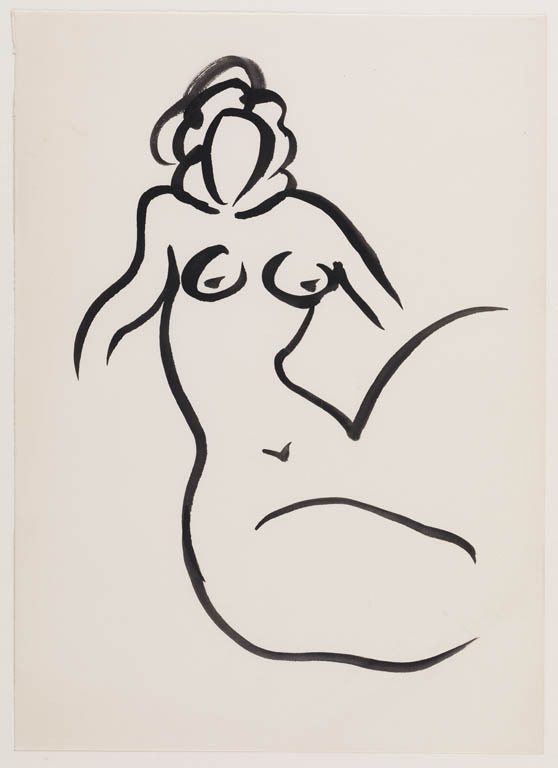Zittend vrouwelijk naakt, de armen achter het hoofd ...