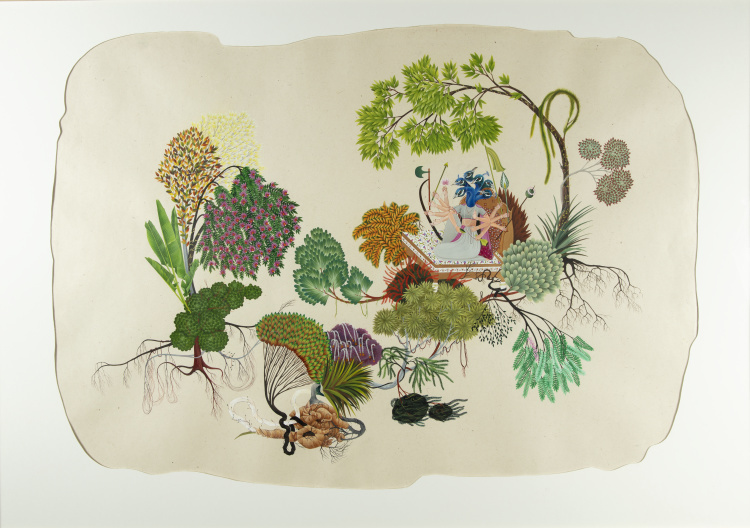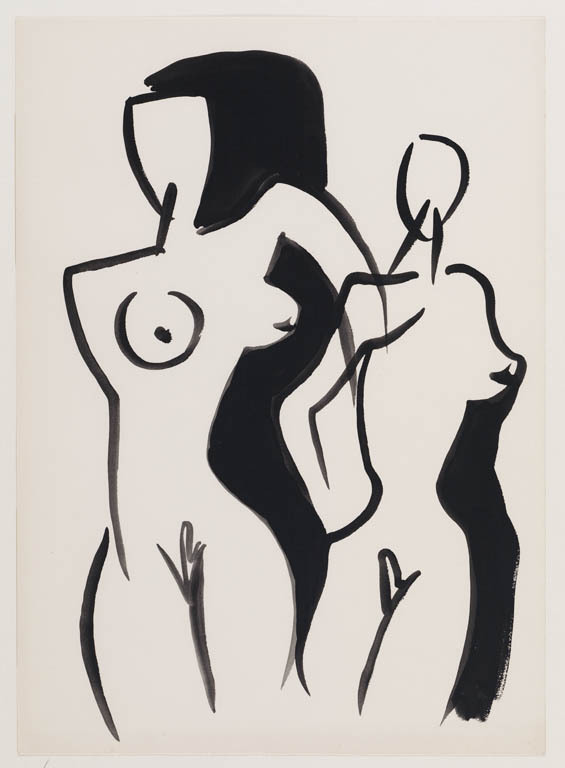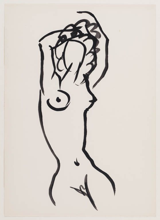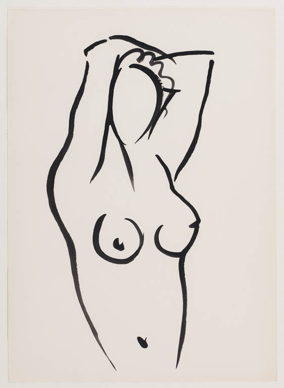 Vrouwelijk naakt, vanaf de navel en met de armen bov...