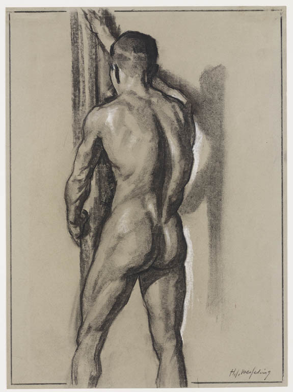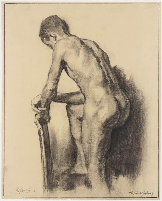 zittend vrouwelijk naakt, driekwart op de rug gezien