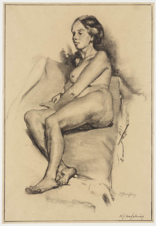 Zittend vrouwelijk naakt, éénkwart naar rechts gewend
