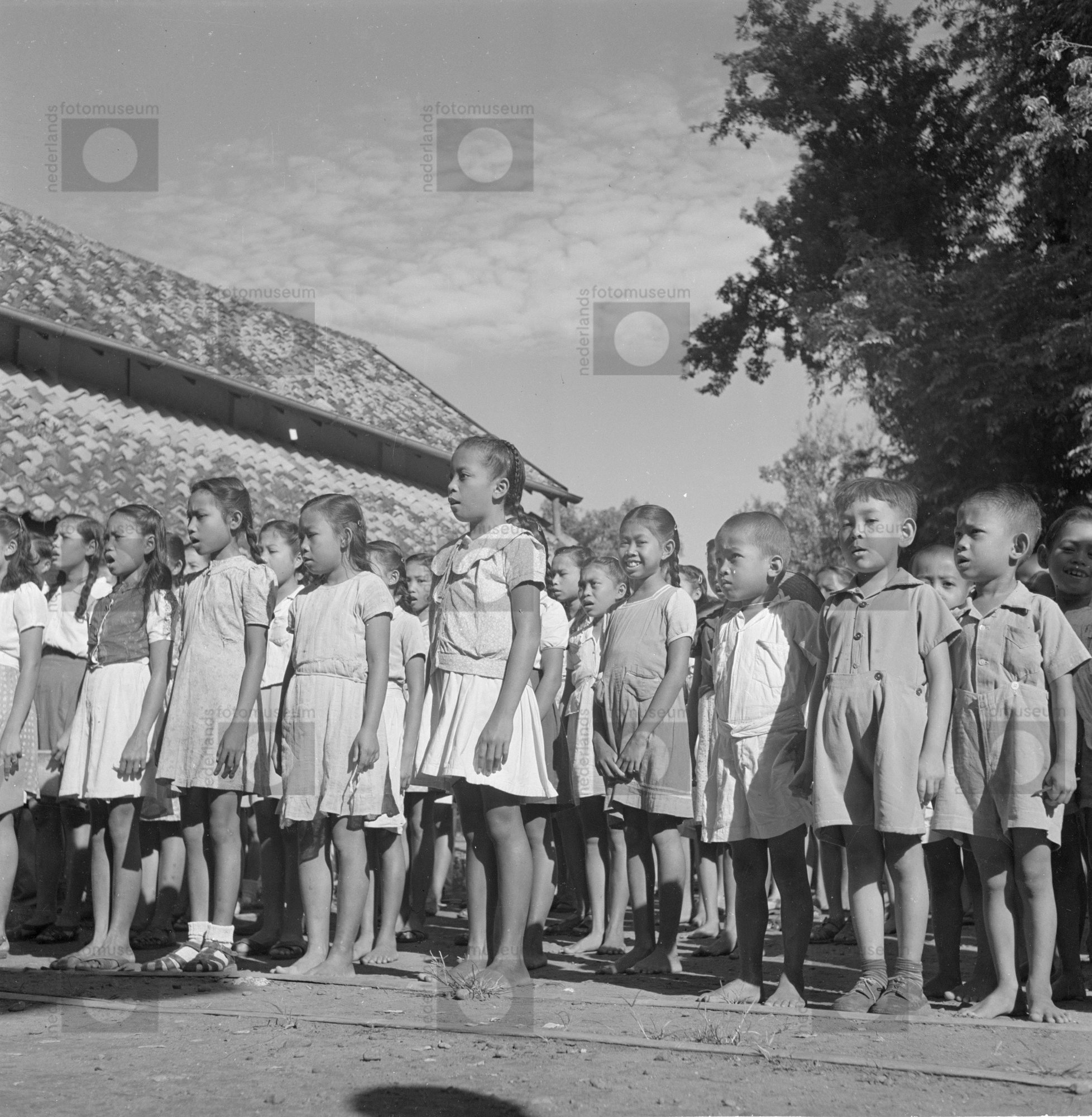 Kleine Indonesische kinderen staan met ouderen naast...