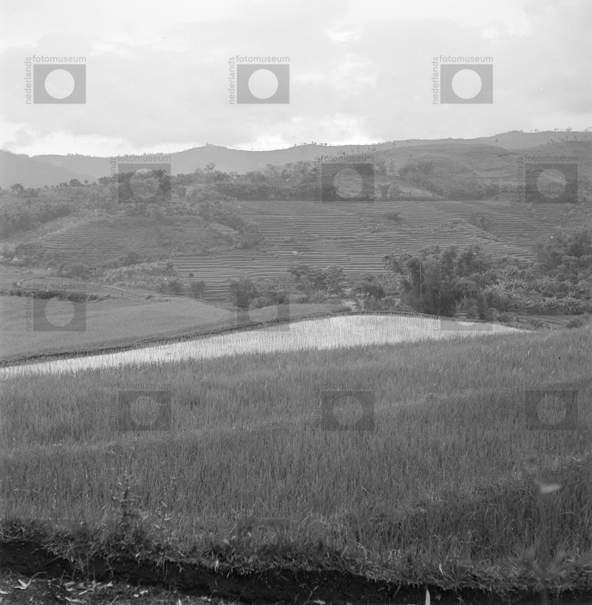 Landschap, waarin terrassen met moerasrijstvelden (s...