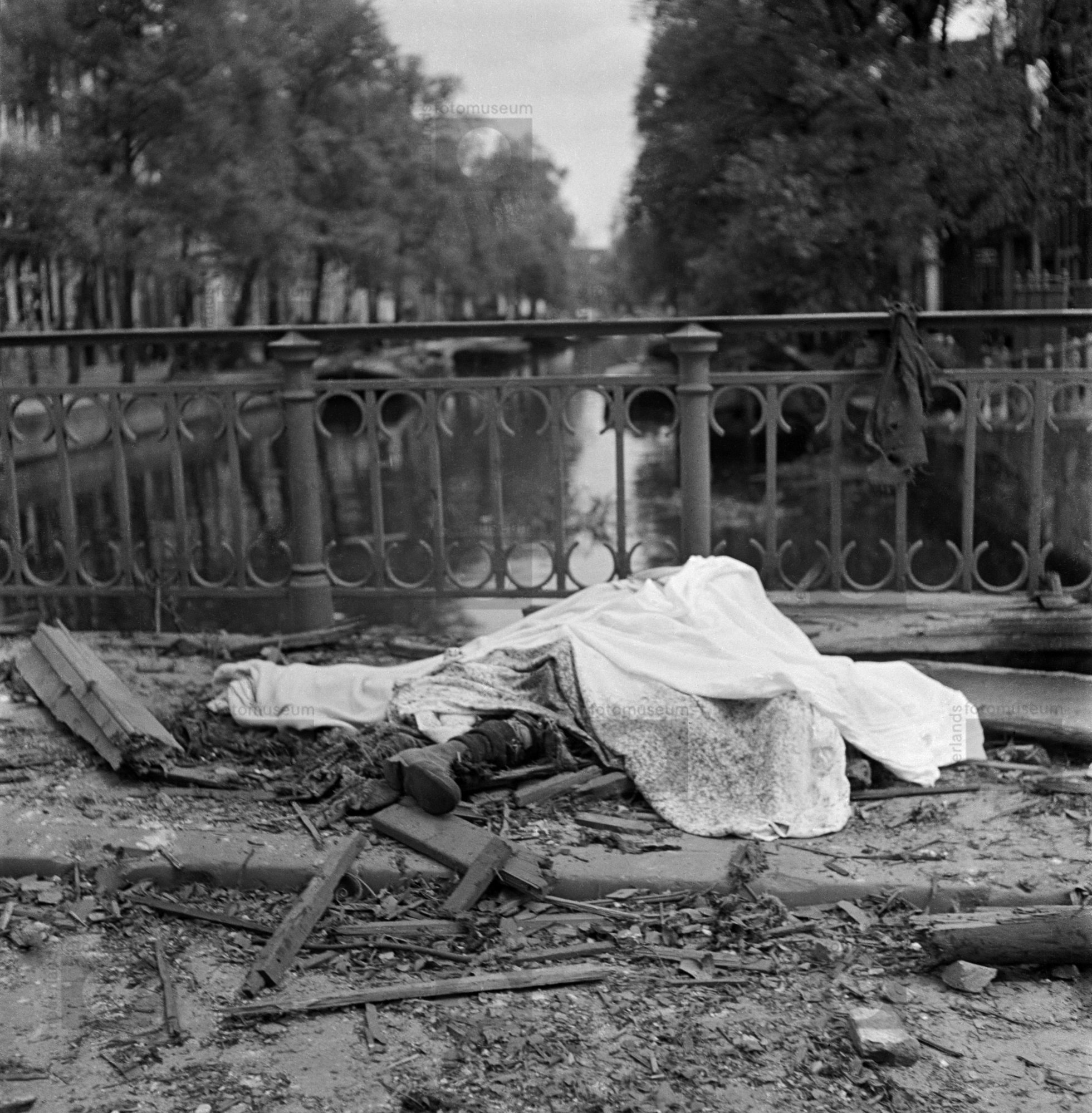 Oorlogsslachtoffer op brug na Duits bombardement van...