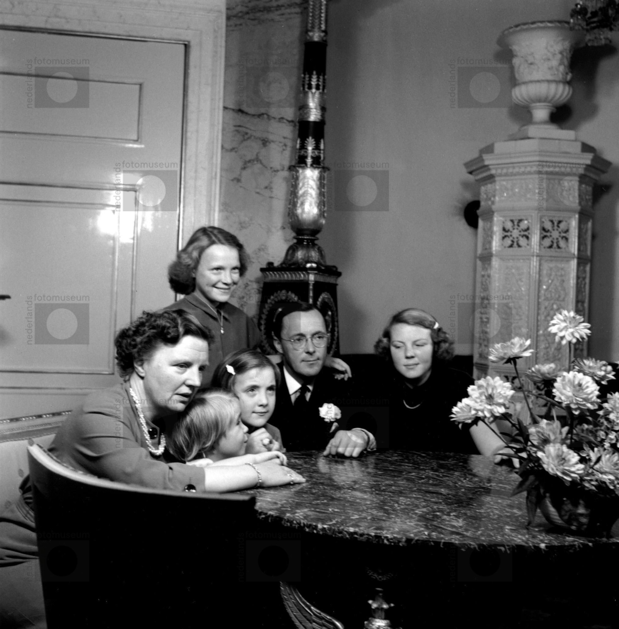 Koningin Juliana en Prins Bernhard met kinderen