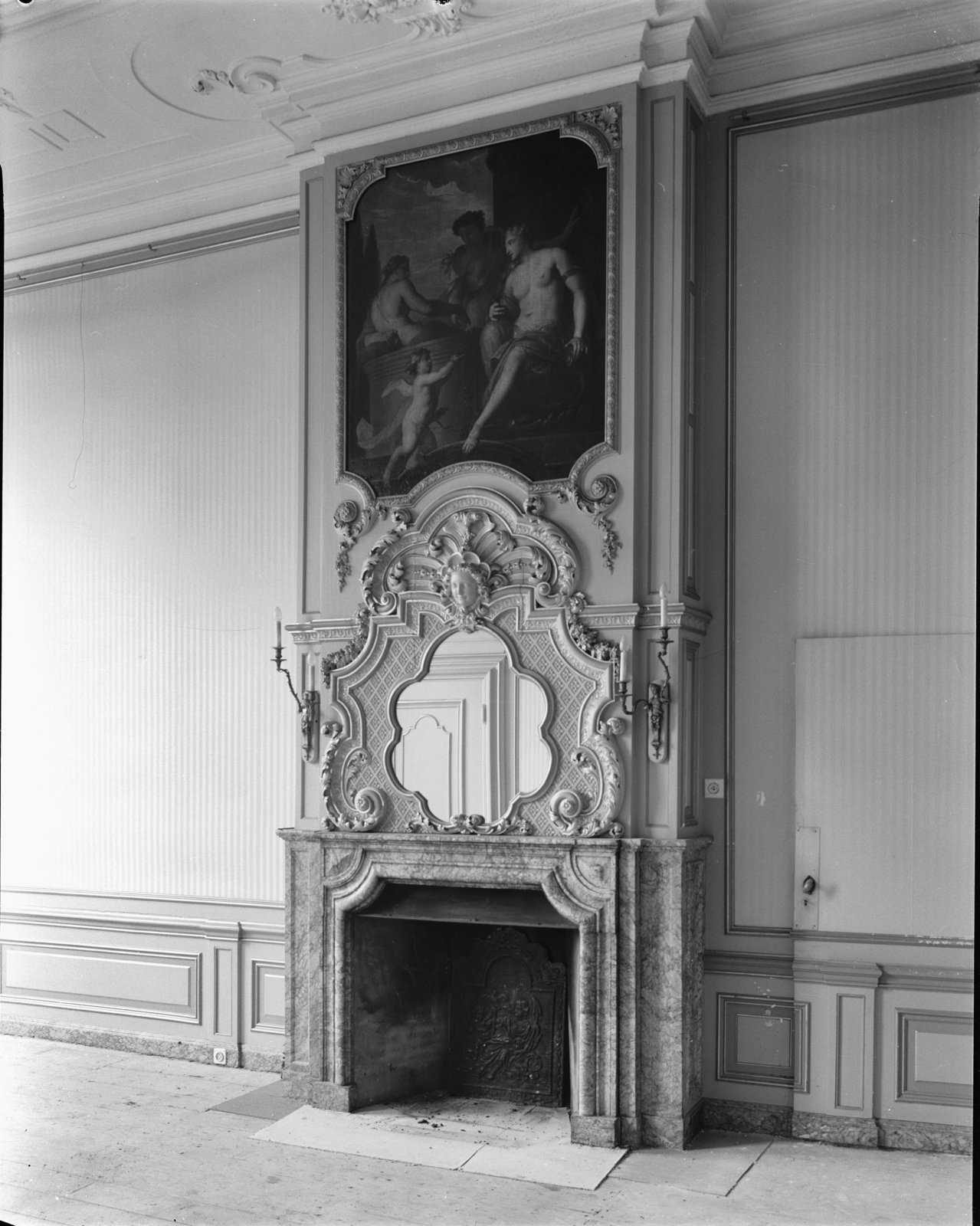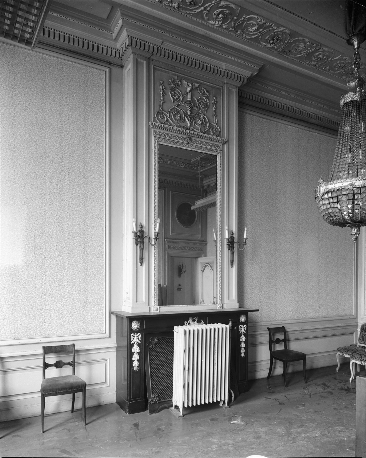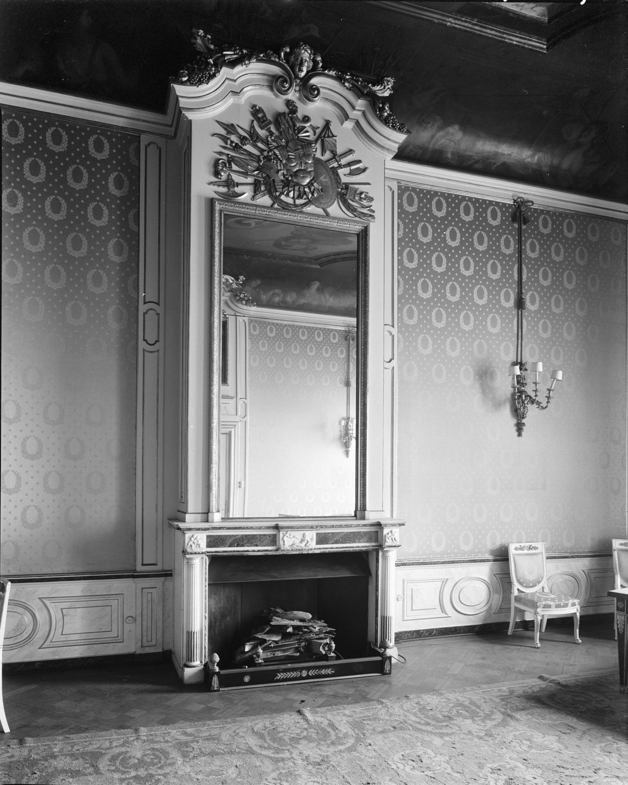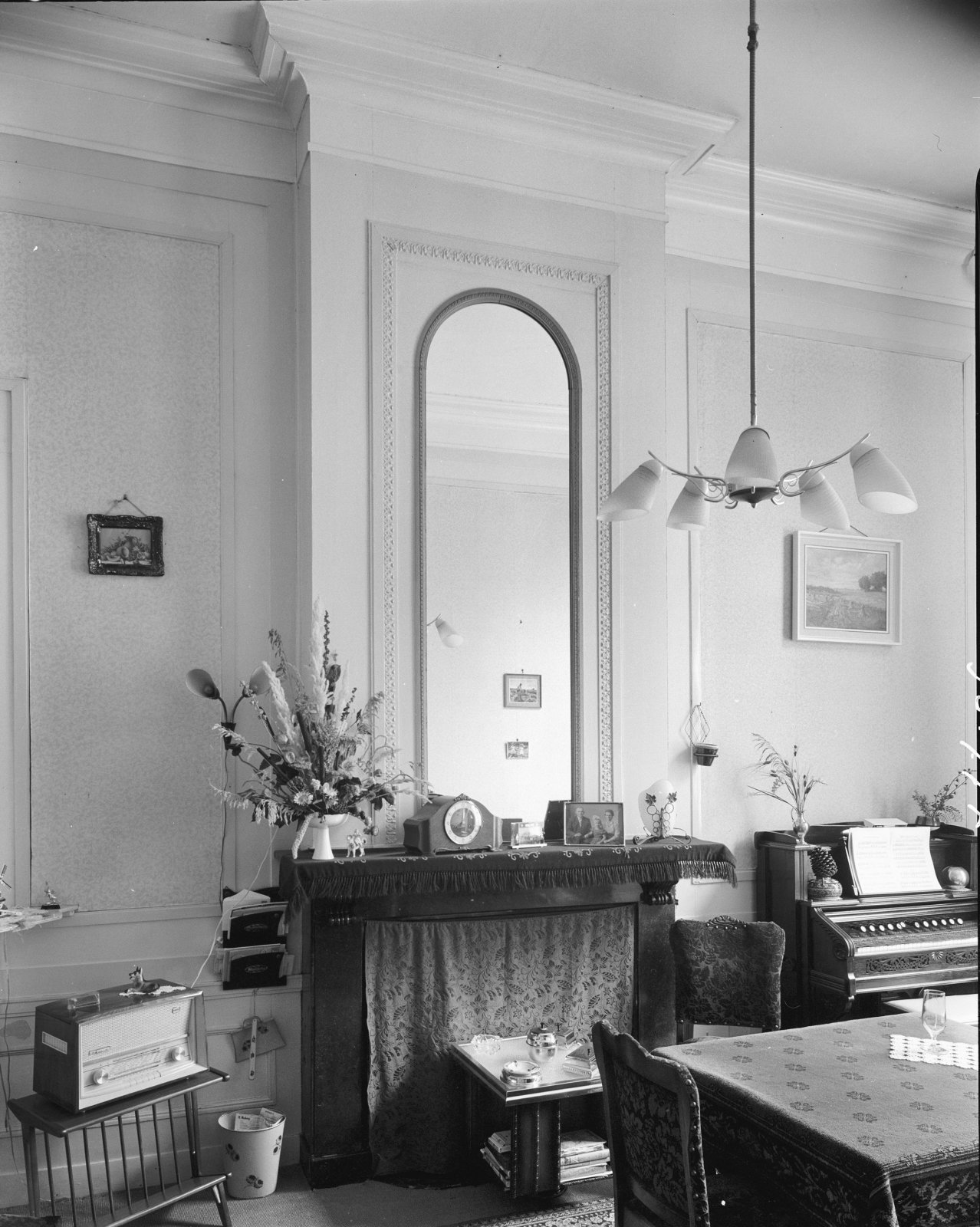Interieur, rechter voorkamer met schouw met spiegel,...