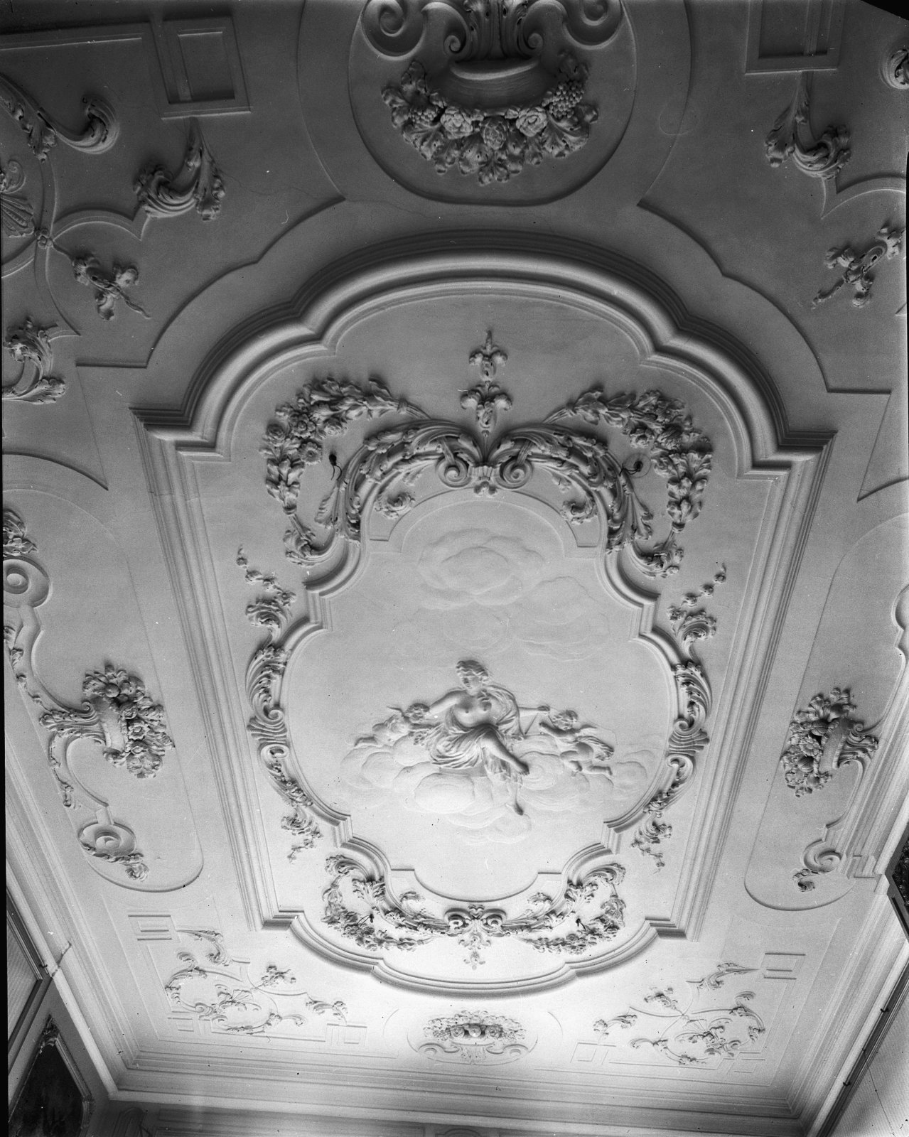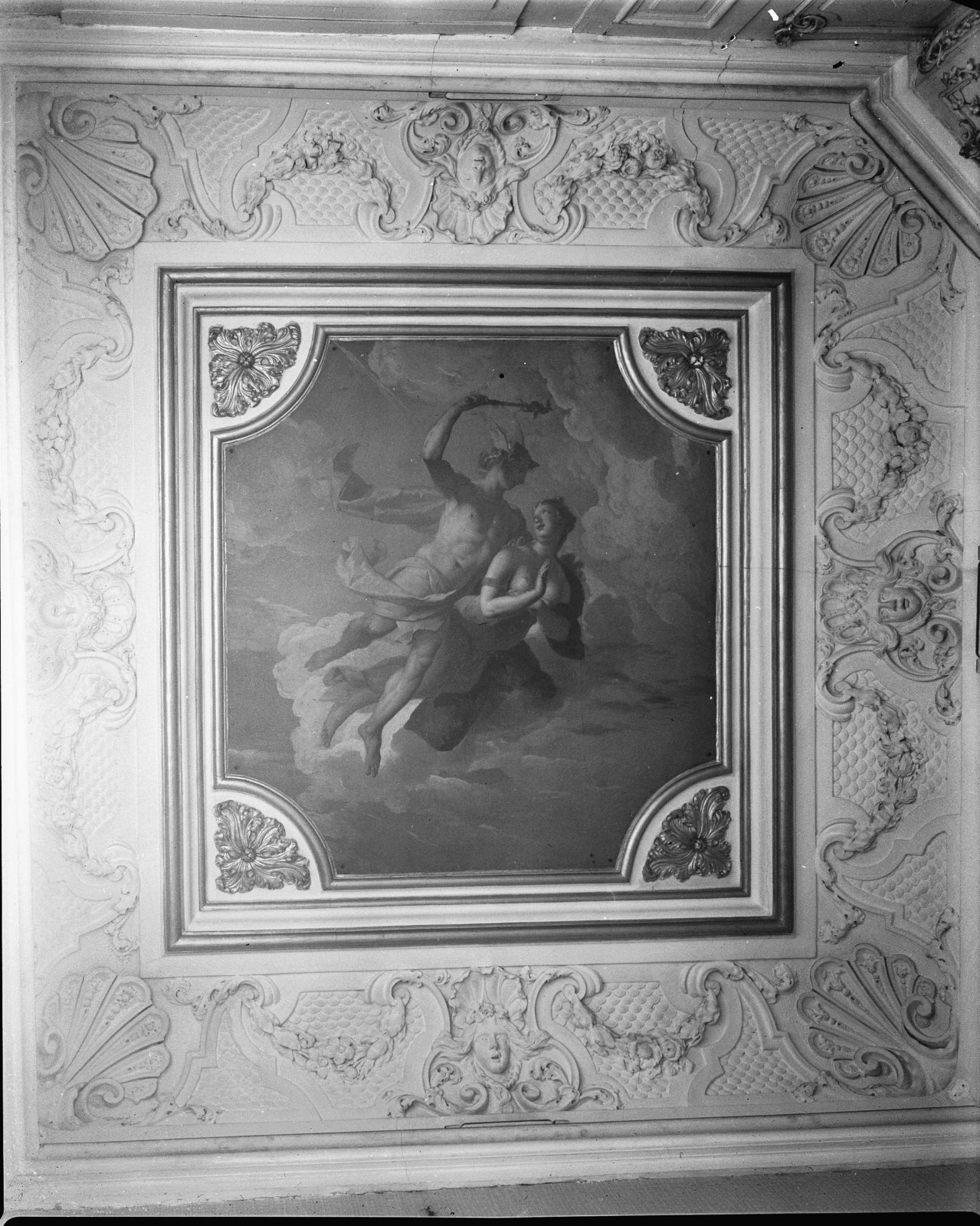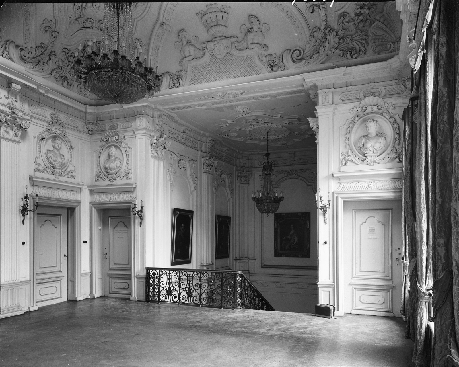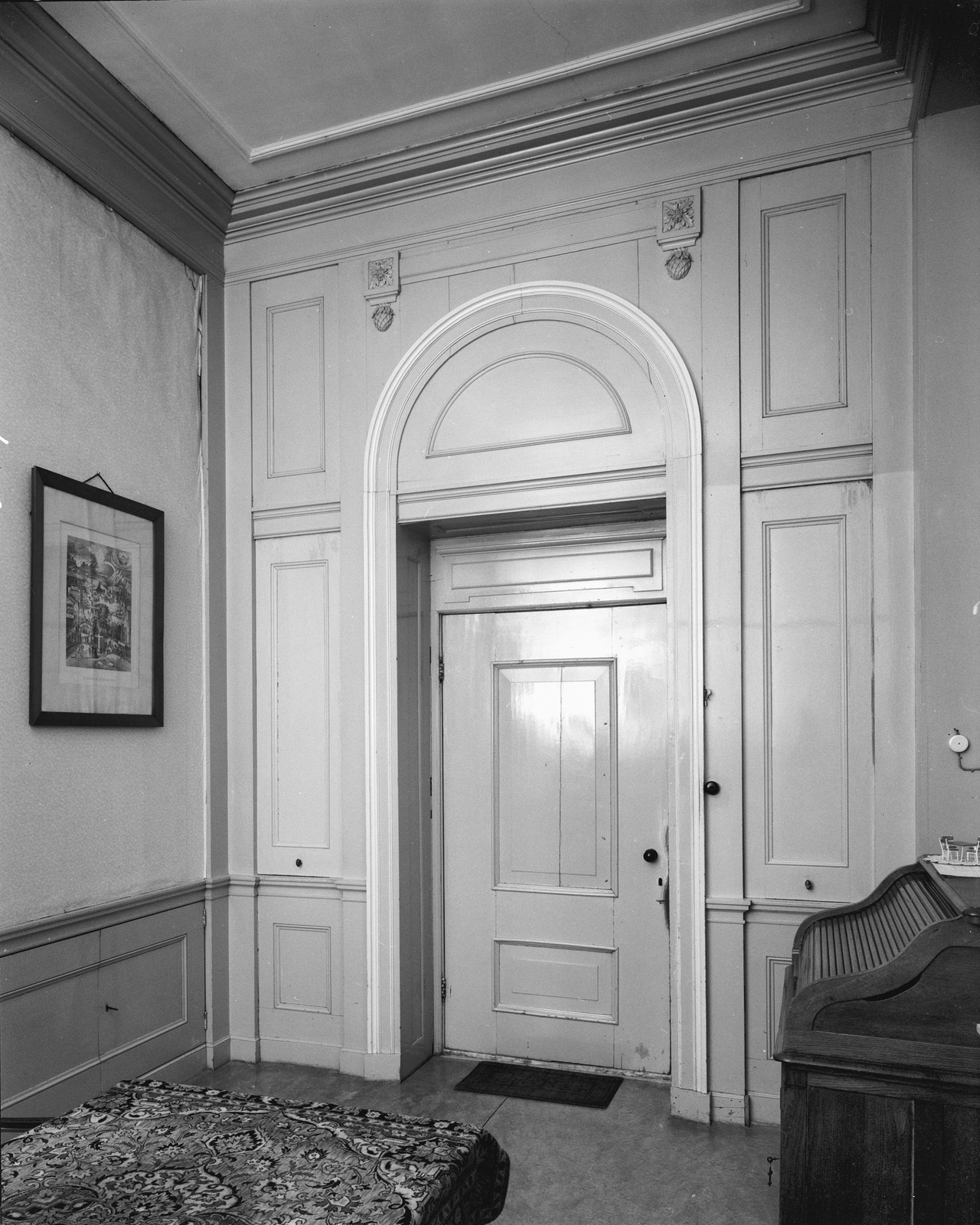 Interieur, rechter voorkamer met schouw met spiegel,...