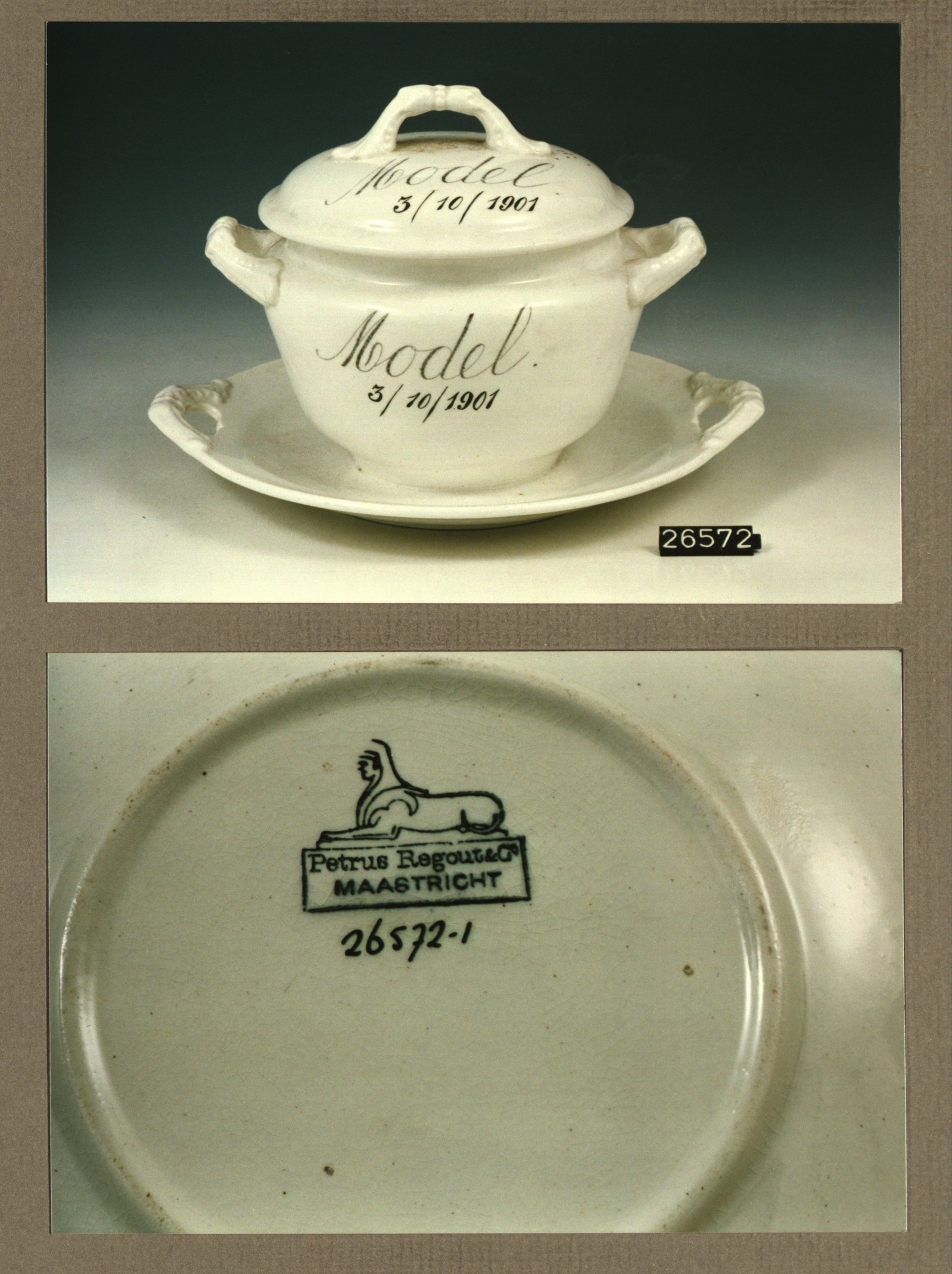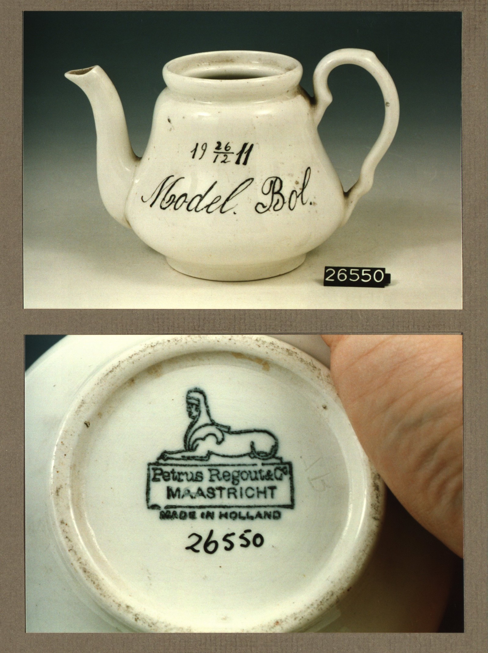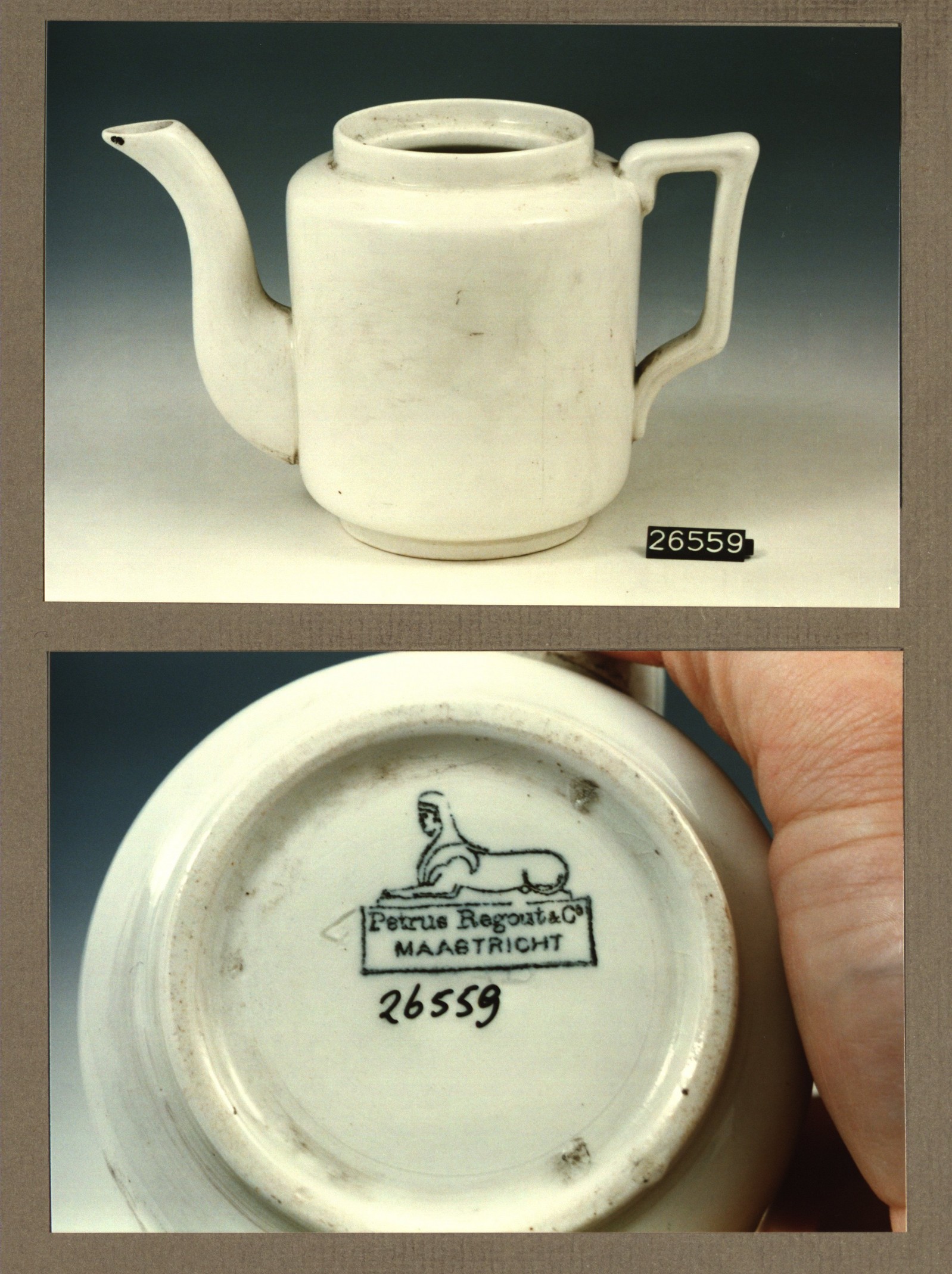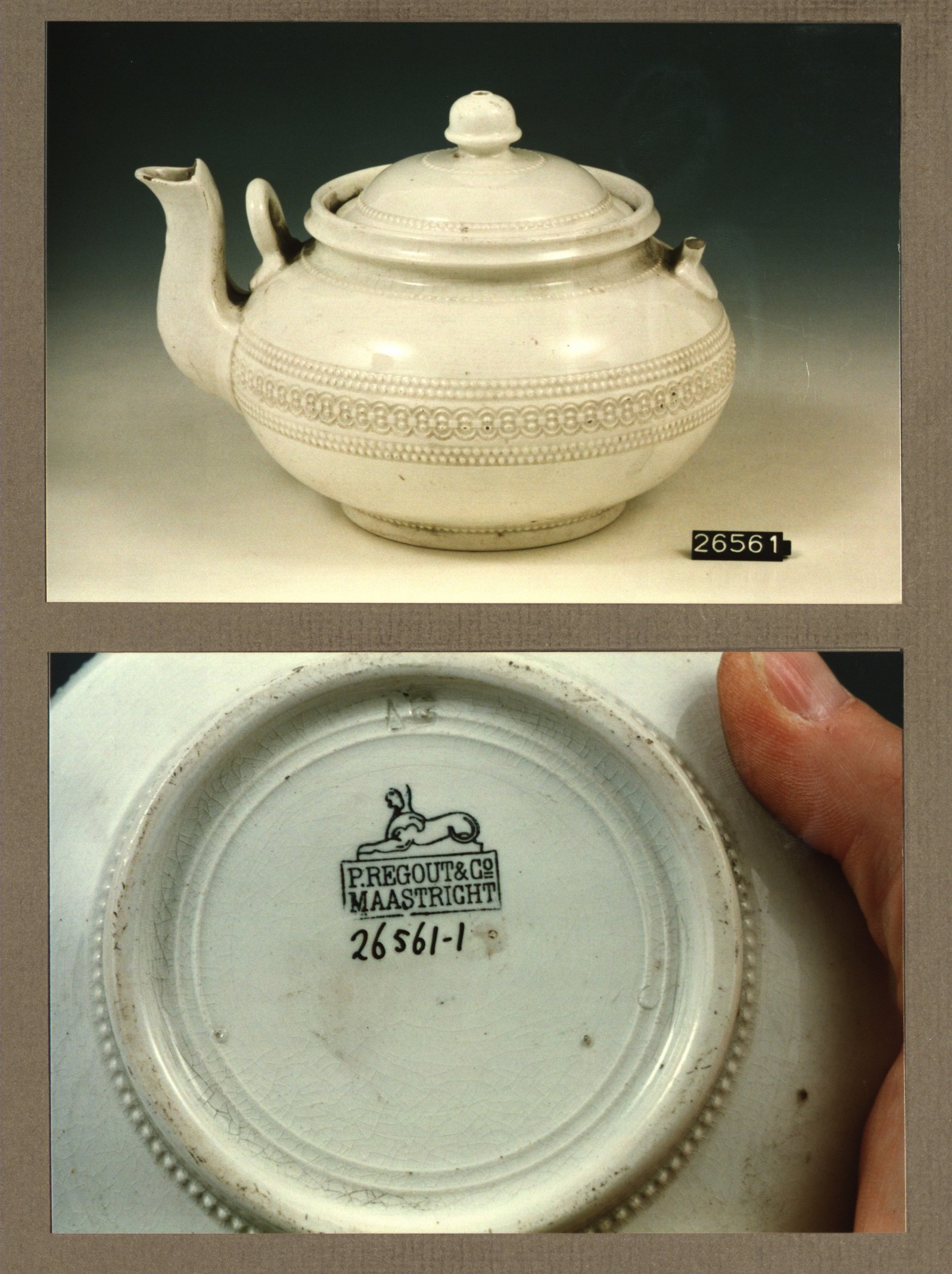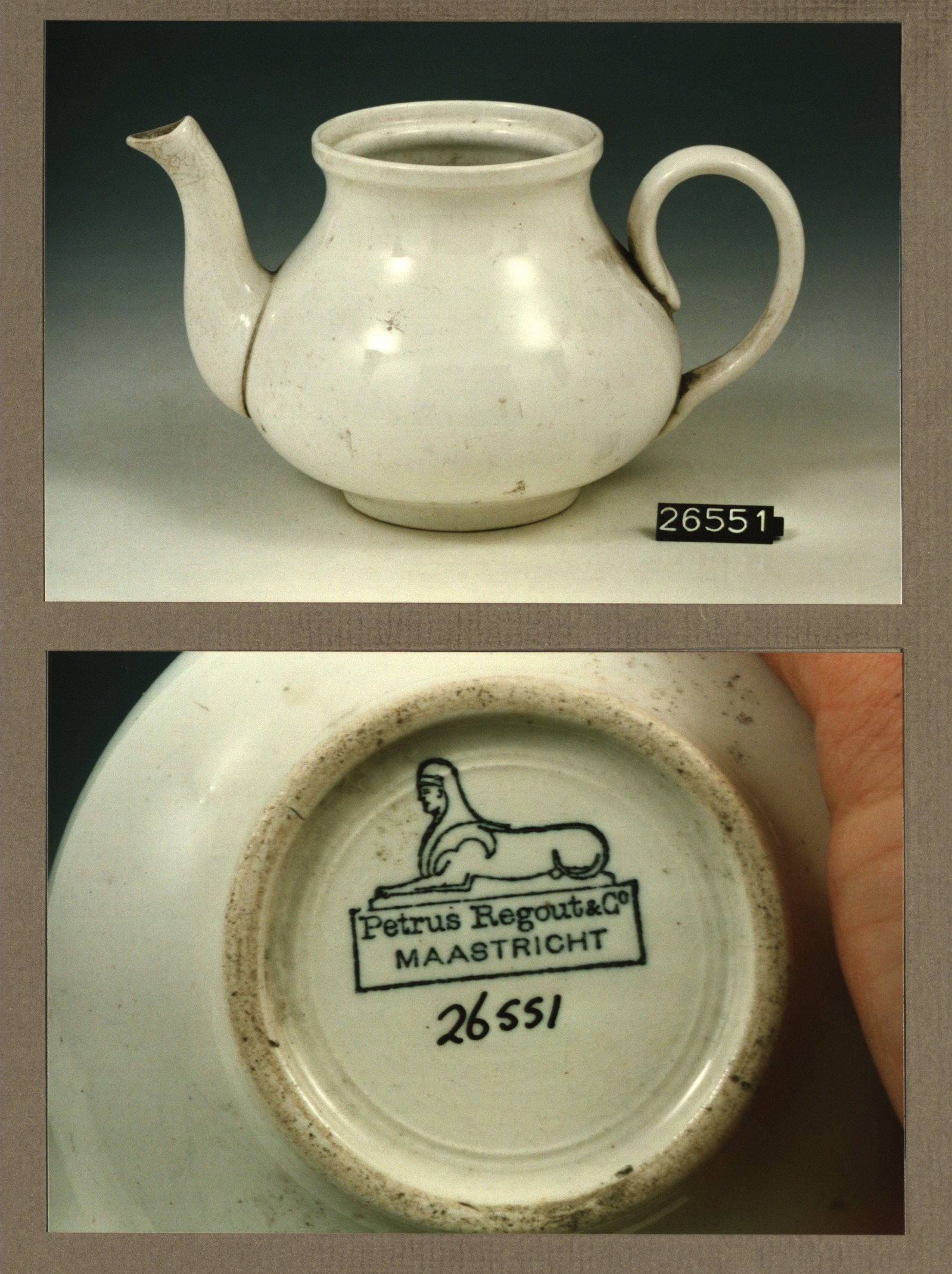 Suikerpot van geglazuurd aardewerk met donkerpaarse ...