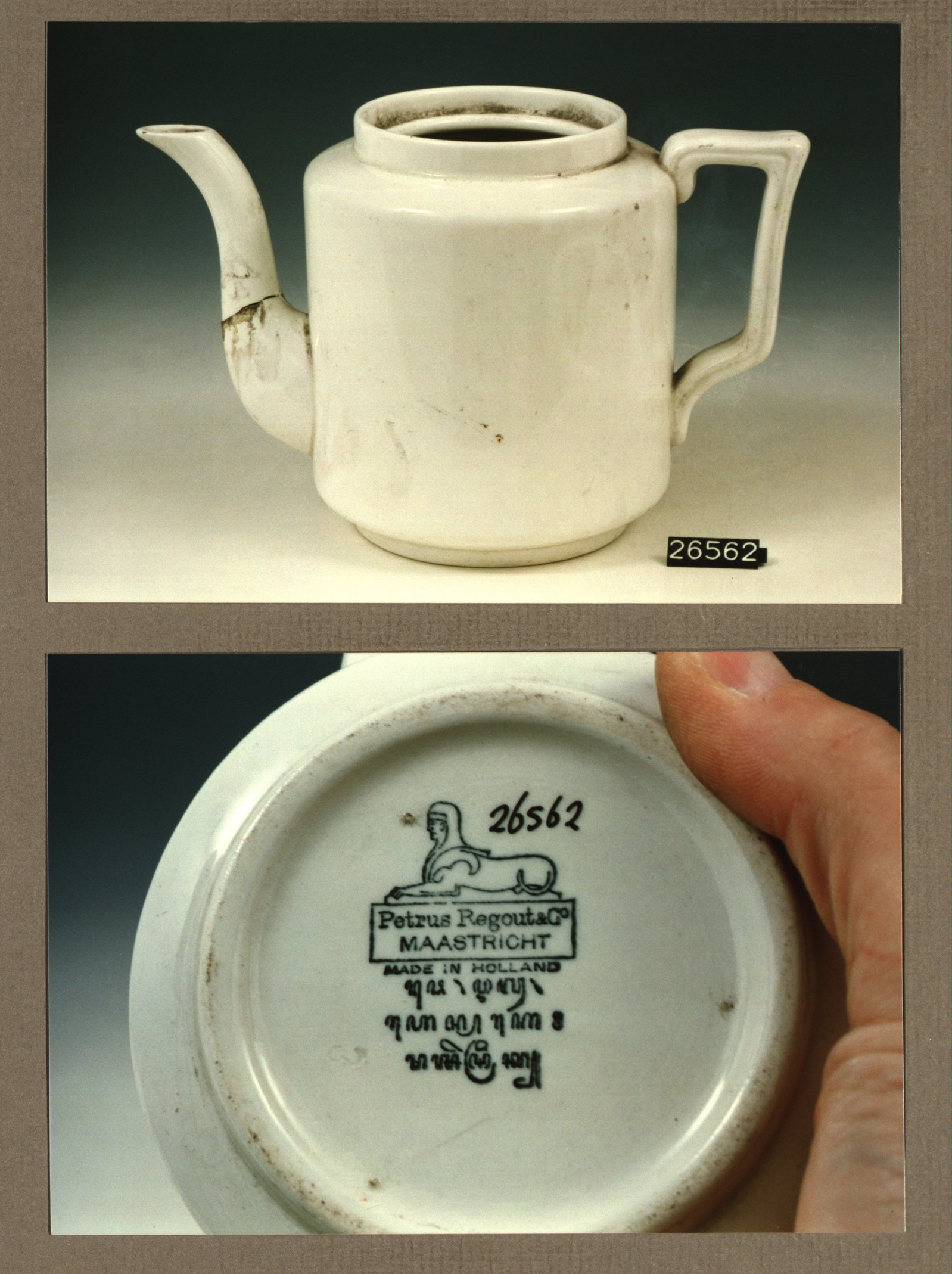 Witte kwispedoor op standring, gemerkt, industrieel ...