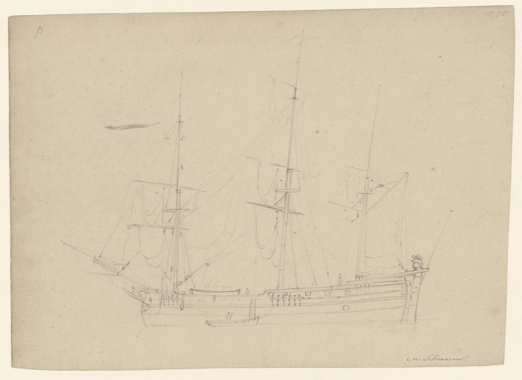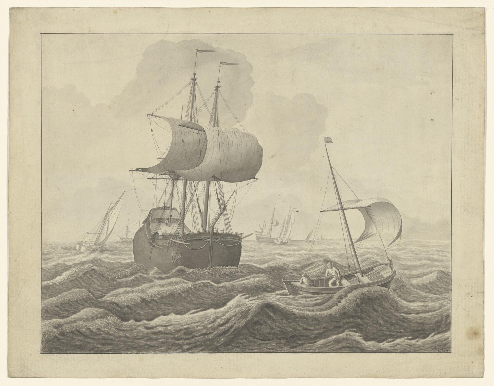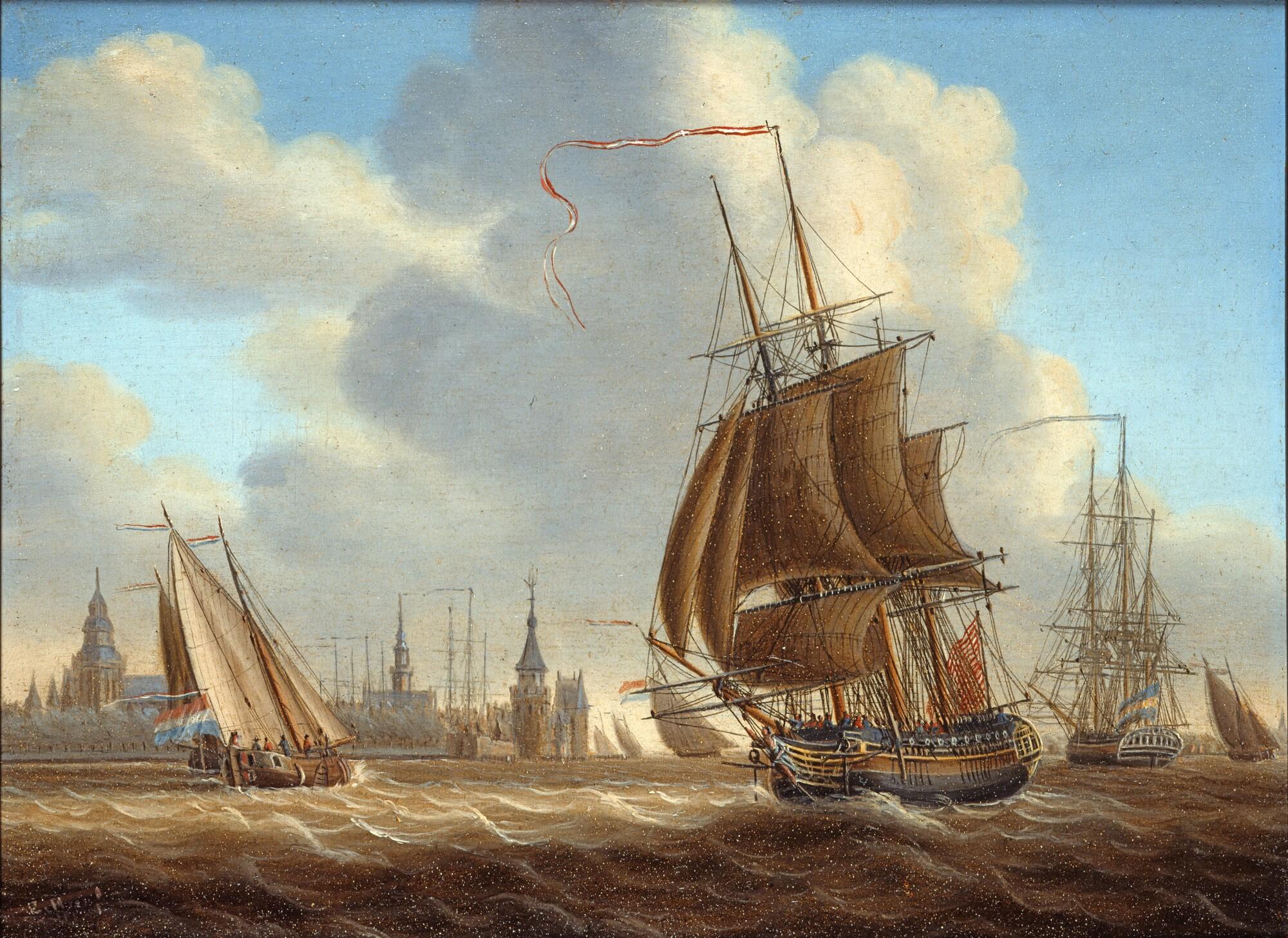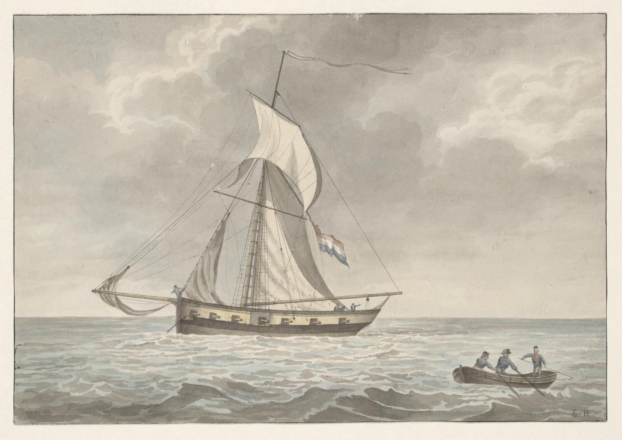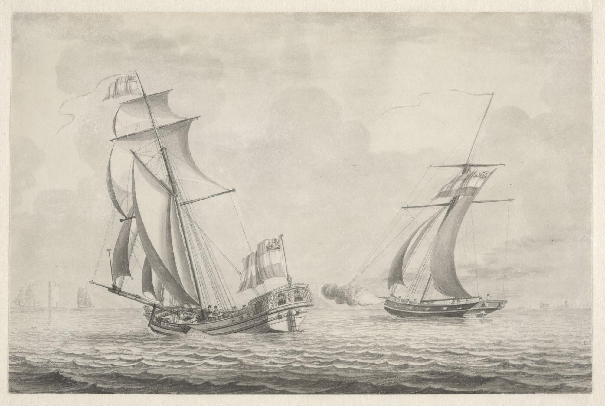 Een admiraliteitsjacht en een oorlogskotter, zeilend...