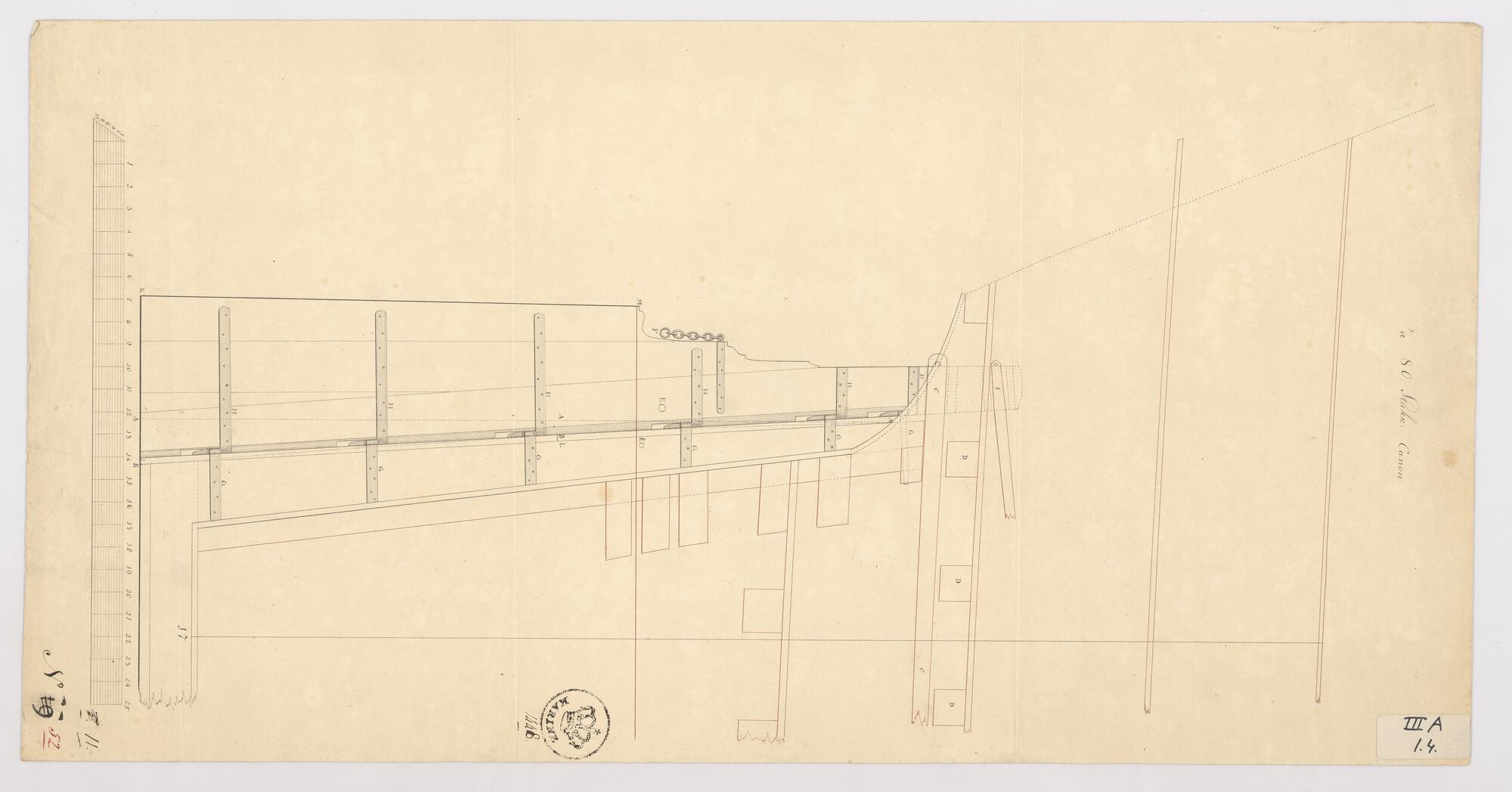 Aanzichten en doorsnede van een kademuur op 's Lands...