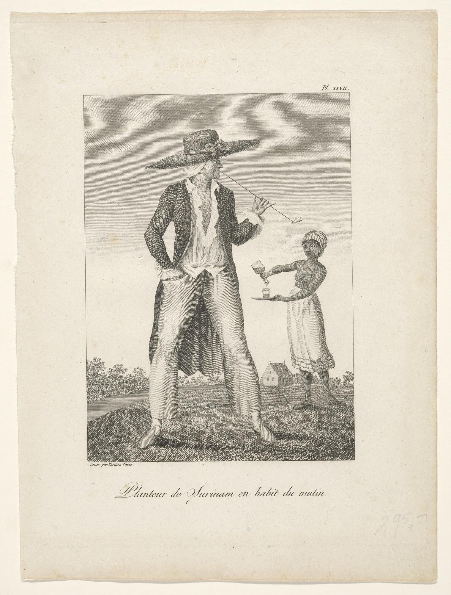 Surinaamse plantage-eigenaar in ochtendkostuum