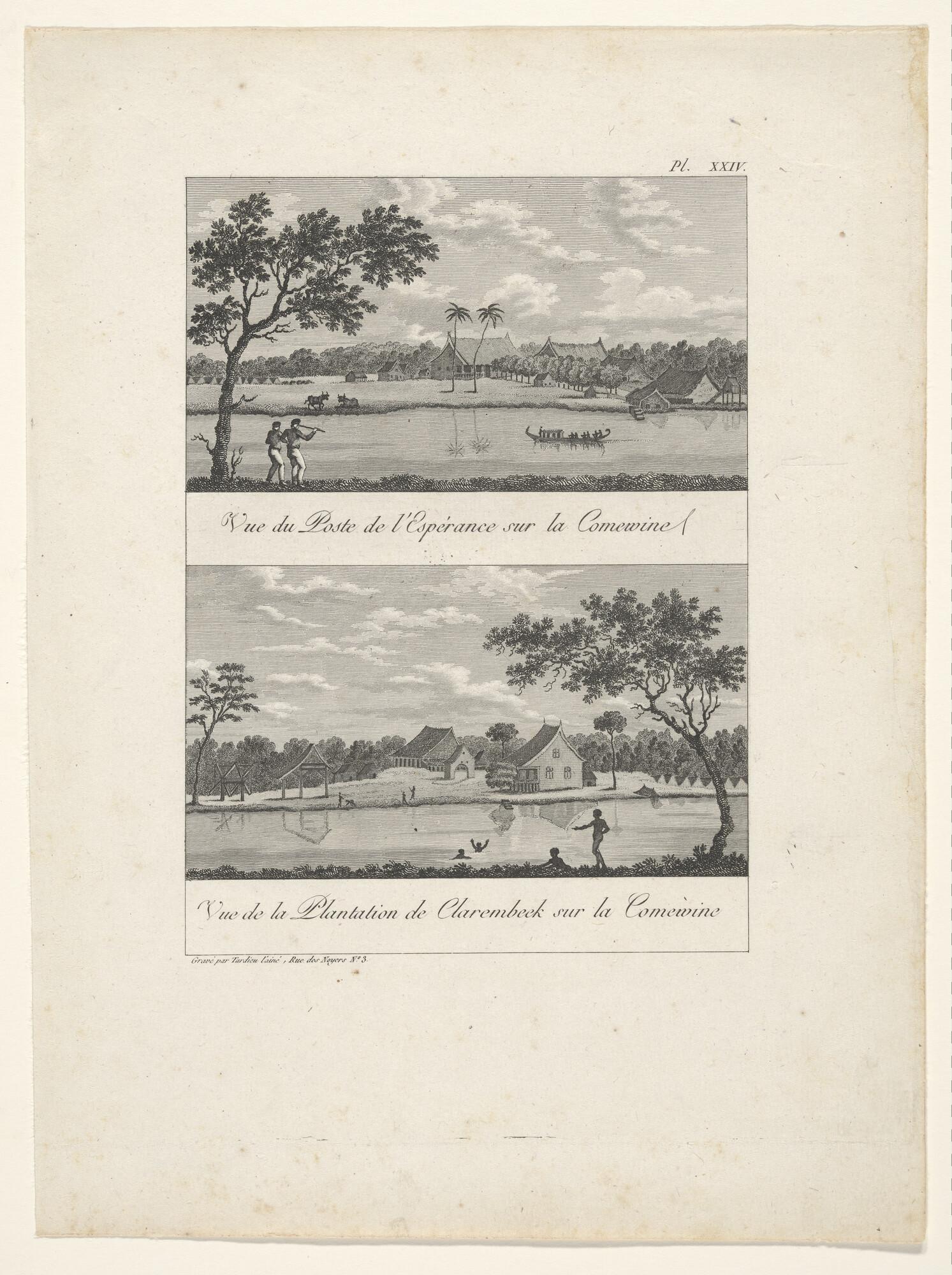 Twee afbeeldingen van nederzettingen aan de rivier d...
