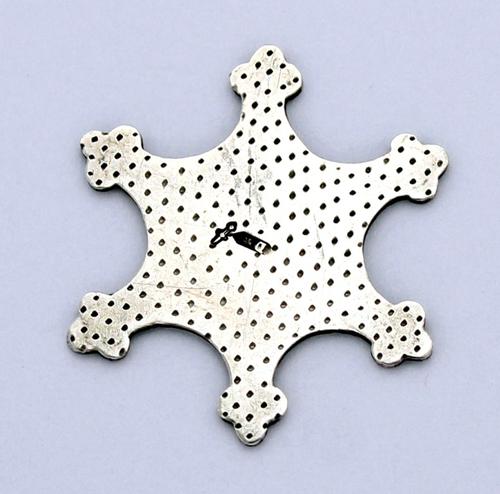 Kuitgesp met bloem en pointilleerwerk.