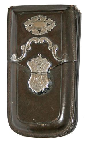 Sigarenkoker / sigarenetui van bruin leer met zilver...