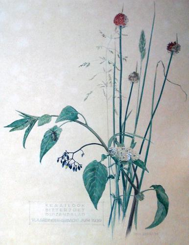 Aquarel. Kraailook – Bitterzoet – Duizendblad.
