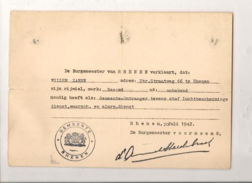 Vrijwaringsbewijs fiets, WO2