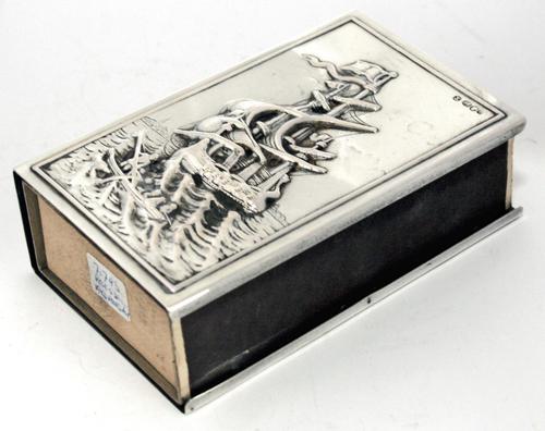 Lucifersdoos houder met dik, gedreven met een zeilschip