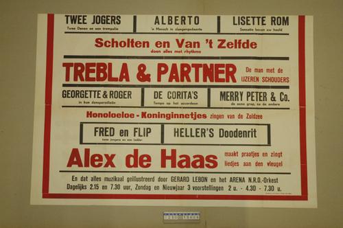 Aanplakbiljet voorstelling met vele artiesten.
