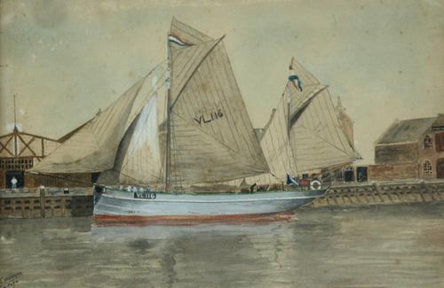 Waterverf schilderij voorstellende de zeillogger VL1...